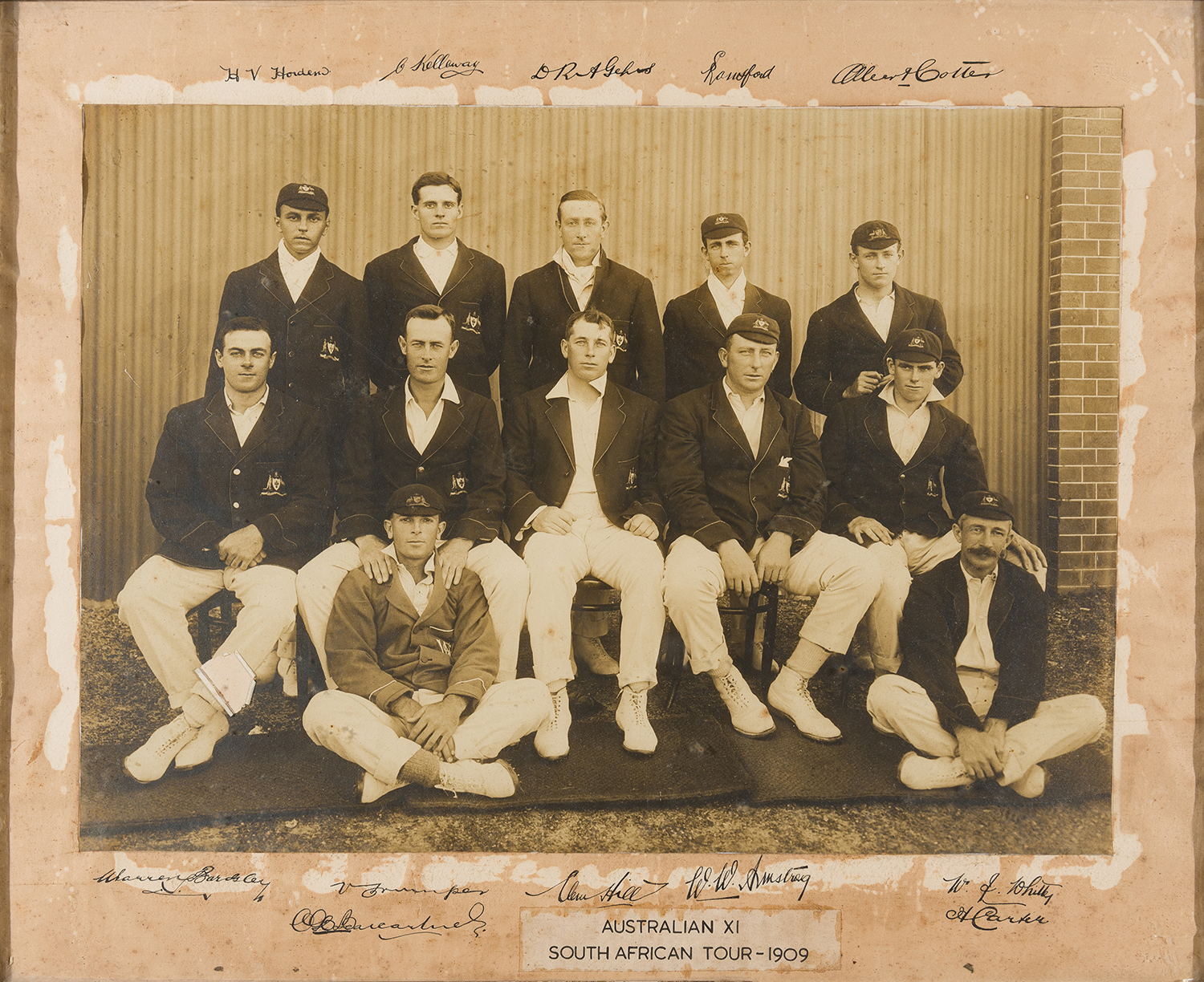 1910-11 AUSTRALIAN TEAM V SOUTH AFRICA, LARGE PHOTOGRAPH, NOTED CLEM HILL (CAPTAIN) & VICTOR TRUMPER
