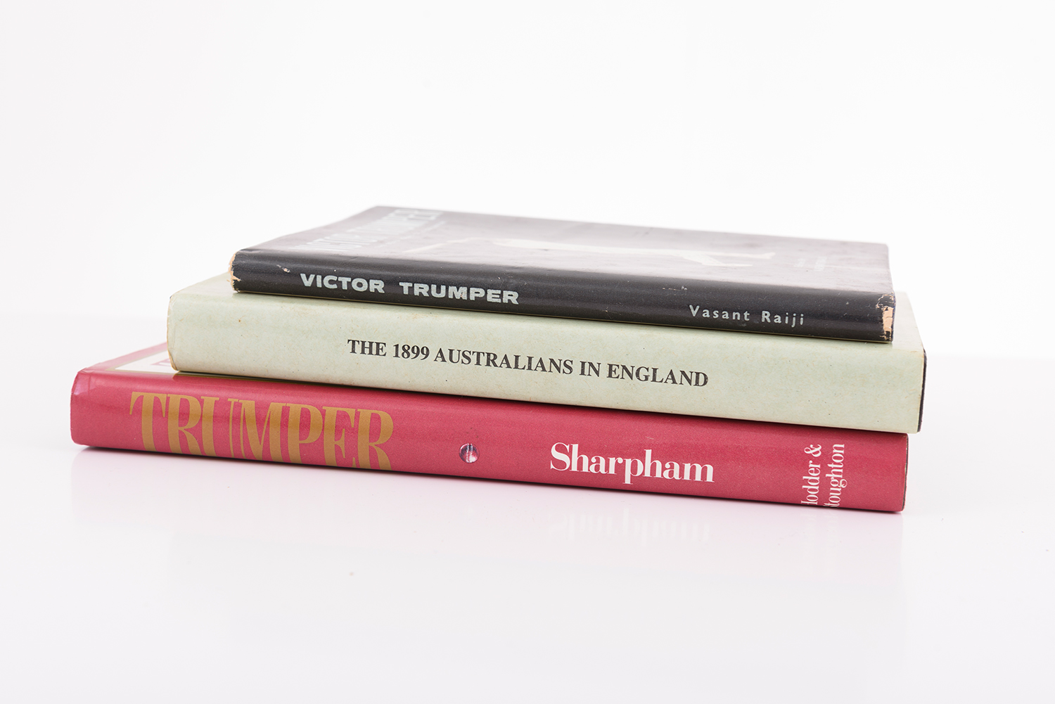 VICTOR TRUMPER: THREE CRICKET BOOKS - "VICTOR TRUMPER THE BEAU IDEAL OF A CRICKETER" BY VASANT RAIJI (SIGNED BY AUTHOR); "TRUMPER" BY SHARPHAM (SIGNED); "THE 1899 AUSTRALIANS IN ENGLAND" BY SHARPHAM.