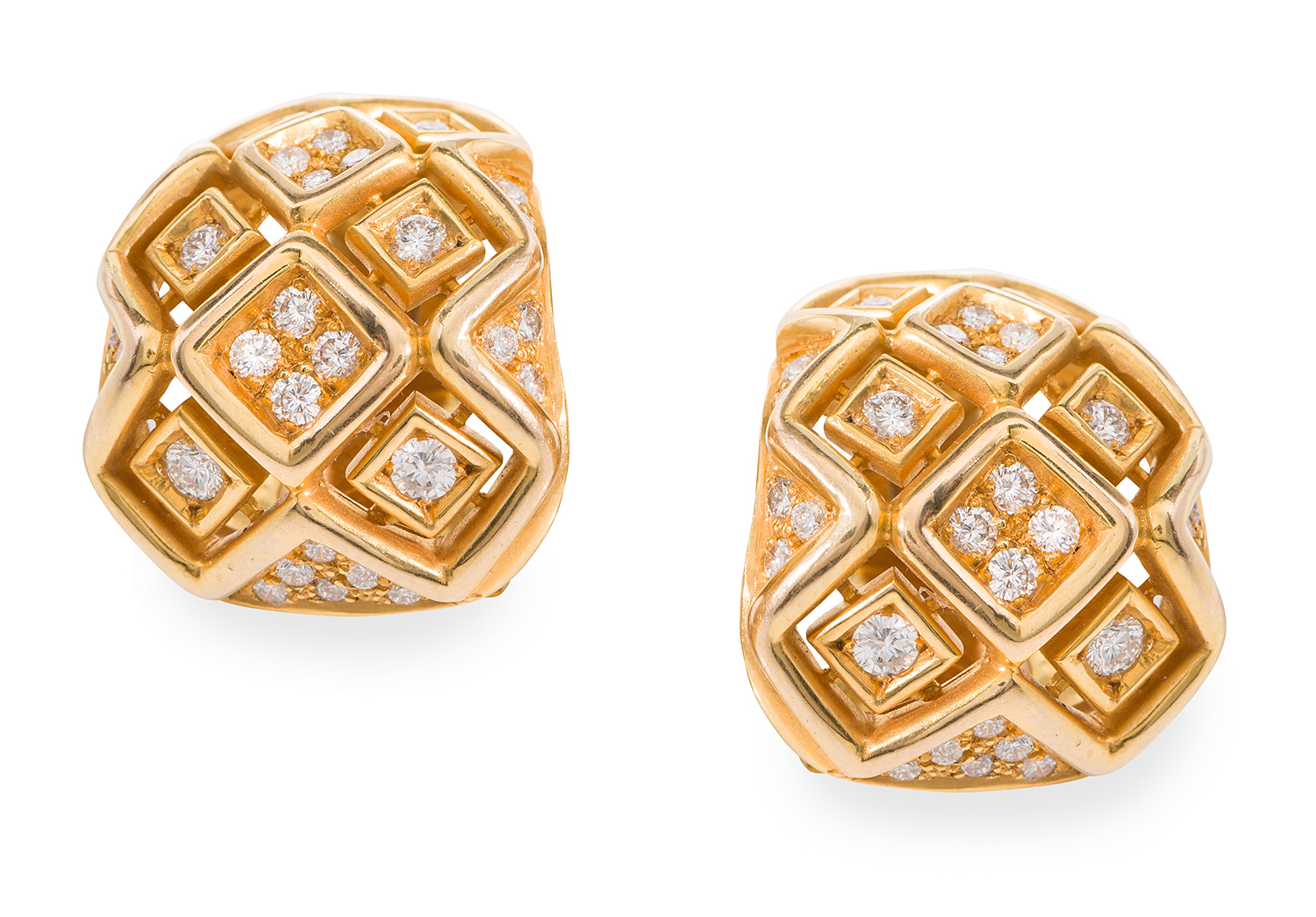Of domed and pierced design, set throughout with round brilliant cut diamonds, mounted in 18ct gold, signed Van Cleef and Arpels 144 231.