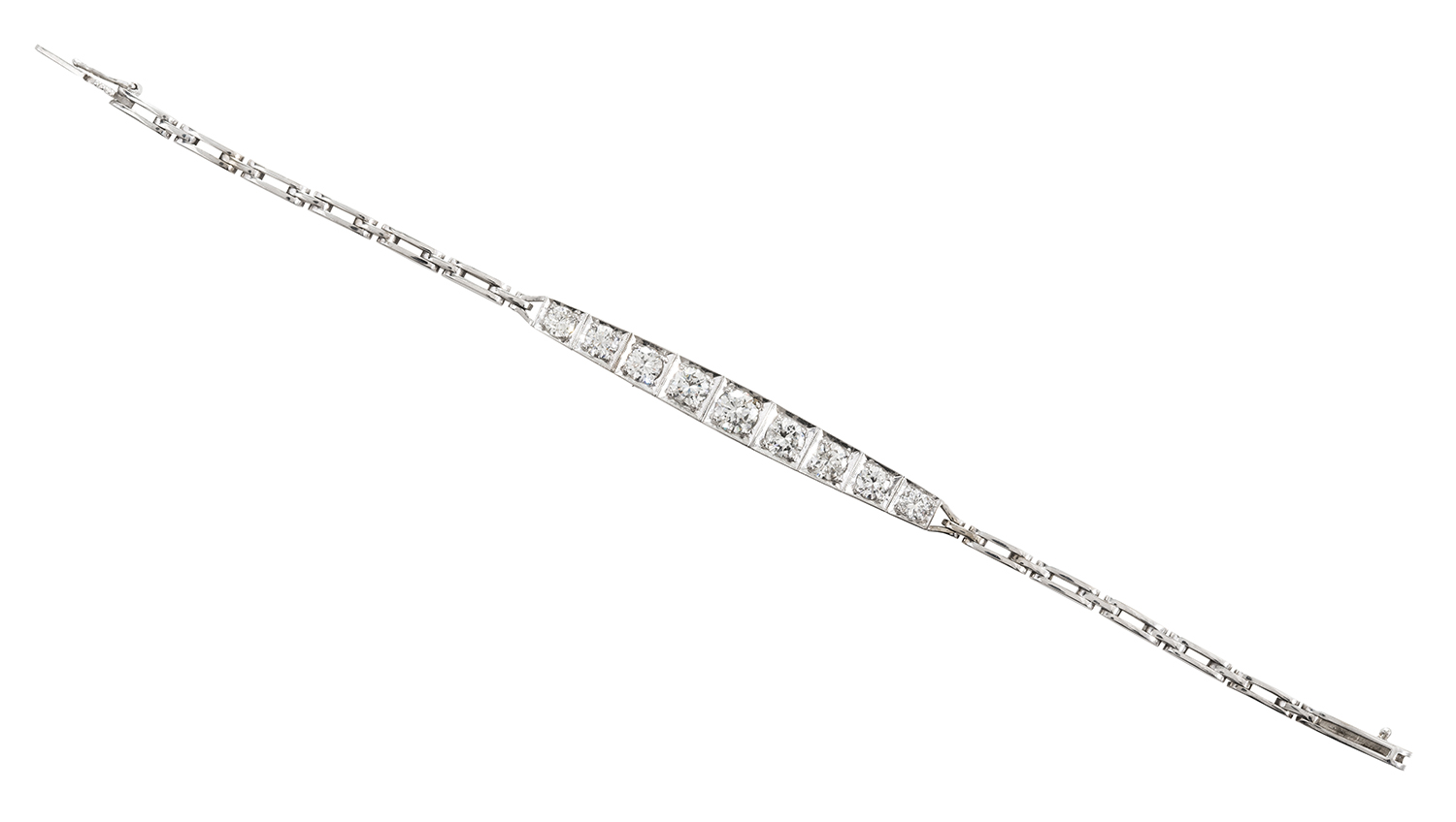 Comprising nine graduated round brilliant cut diamonds totalling 2.00cts, all mounted in white gold, total length 170mm.