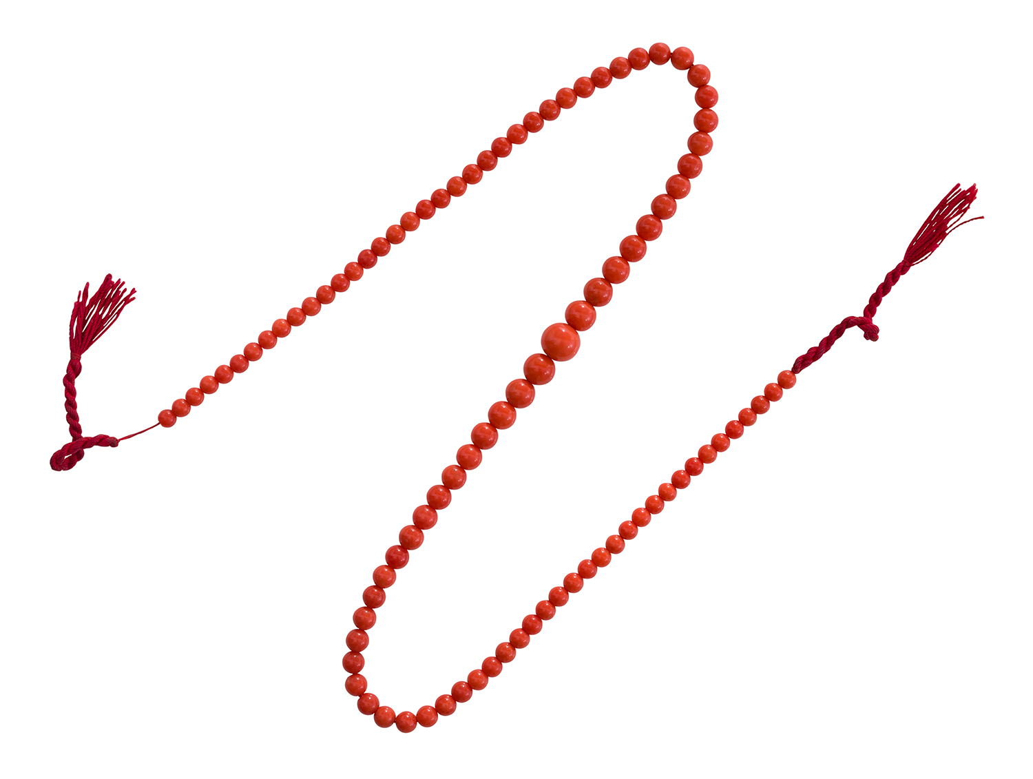 The graduated round polished beads measuring 5.47mm to 11.12mm of even red hues, total length 570mm.