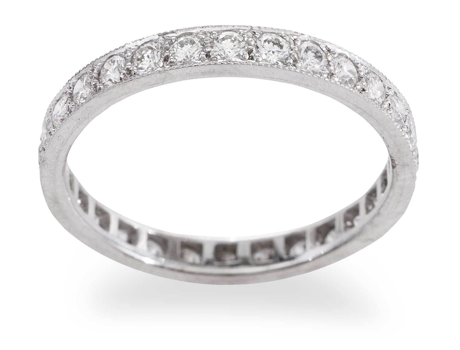 Comprising twenty eight round brilliant cut diamonds totalling 0.42cts, all grain set in 18ct white gold, ring size J.