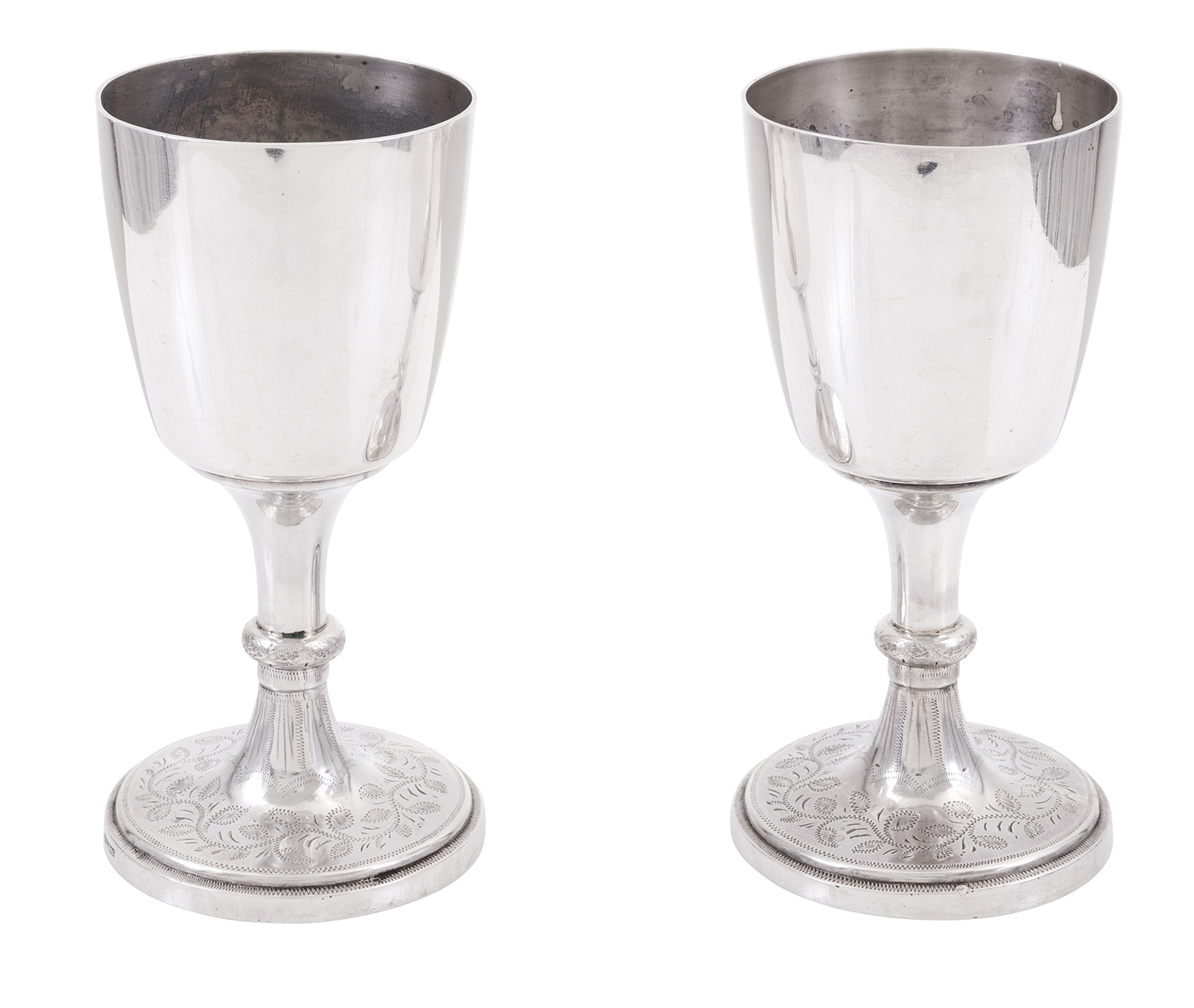 The ogee formed bowl raised on a knopped stem above an engraved tapering foot, with repeating floral motifs, stamped E. FISCHER GEELONG to base, approximately 476 grams silver, 14cm high, the base 7cm in diameter.