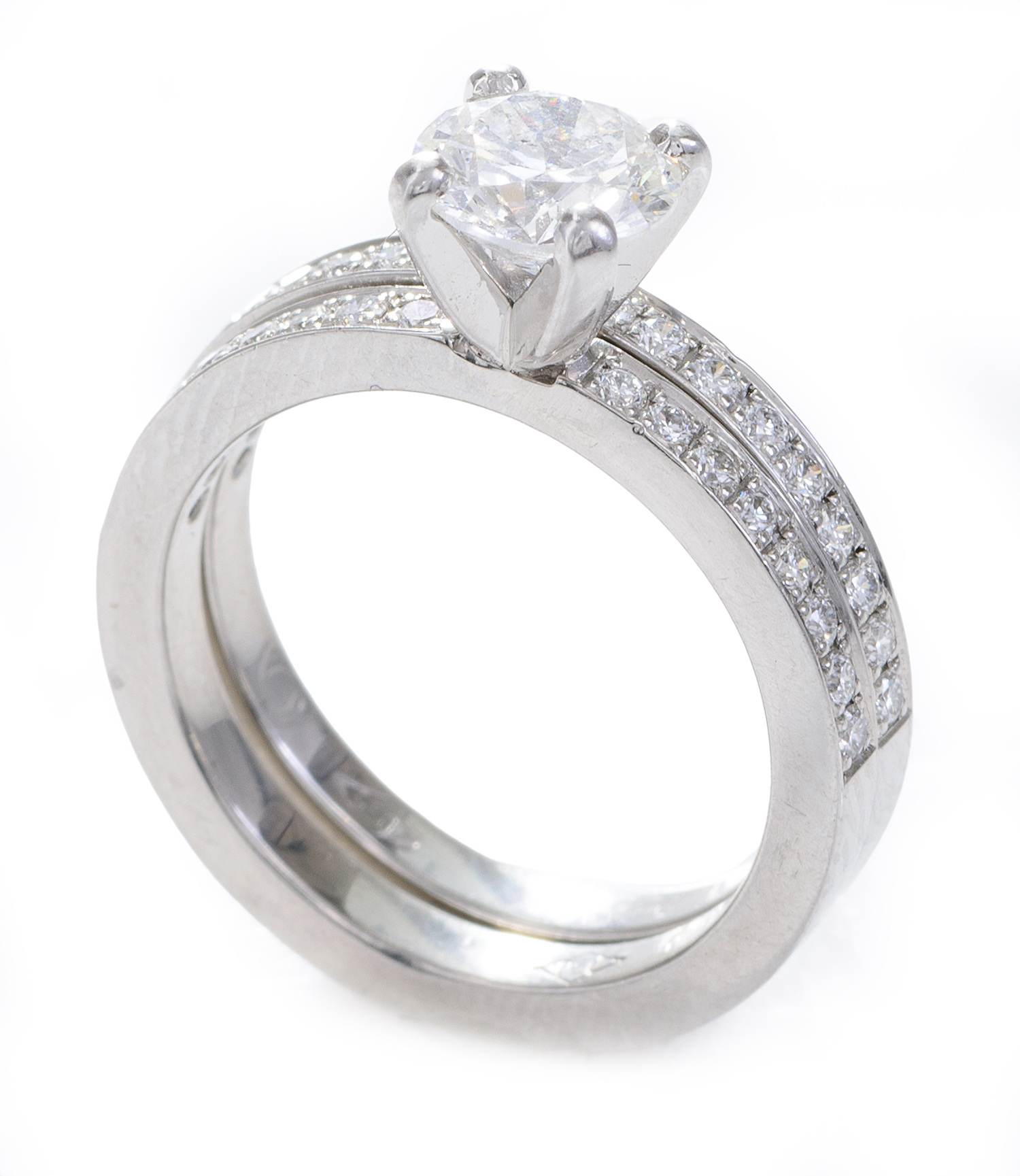 Central diamond = 0.70cts, graded in the mount as colour H-I, clarity SI2.