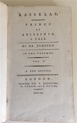 JOHNSON, Samuel: RASSELAS; PRINCE OF ABISSINIA. New edition. f'cap 8vo; contemporary calf, gilt. Printed for T. Johnstone, W. Taylor & J. Davies, 1790. Scarce.