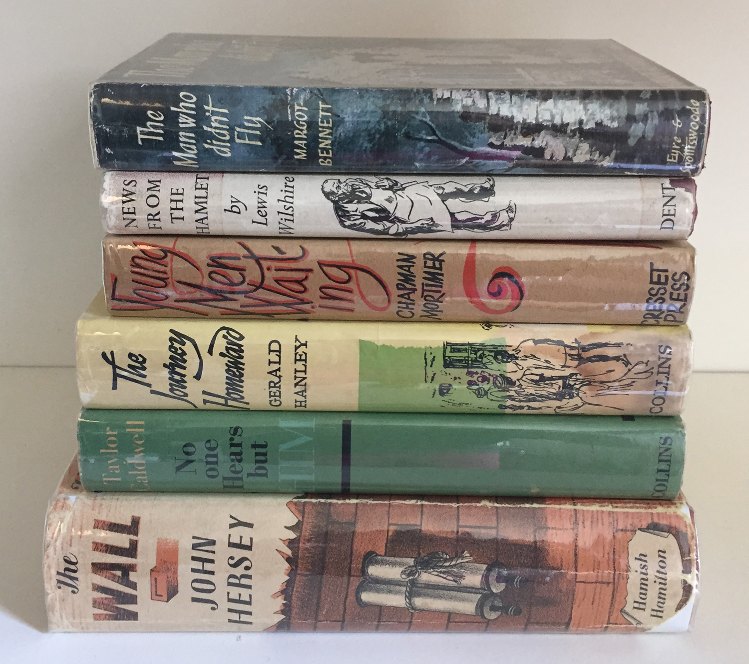 [MODERN LITERATURE]: A collection of six books, all first editions, including: BENNETT, Margot. THE MAN WHO DIDN'T FLY. Eyre & Spottiswoode, 1955. + HERSEY, John. THE WALL. Hamish Hamilton, 1950. Barnett Freedman designed dust-jacket.