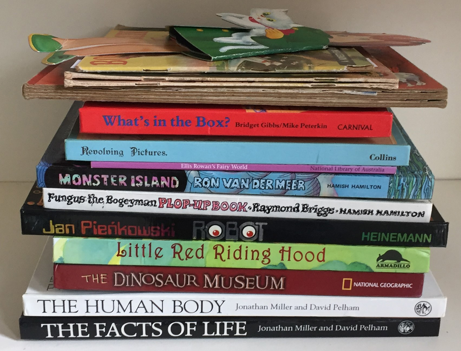 [Pop-up books]: A nice collection of fifteen 'pop-ups' and novelty books, including: BOBBIE BRUIN FROLICS. Mulder & Zoon, [c.1955]. + THE FARMYARD. Collana Rosa d'Oro, [c.1955]. Rosa d'Oro series. + THE MAGIC HUNT. Edizioni Conte, [c.1954]. Rosa d'Oro series. + MONSTER ISLAND. Hamish Hamilton Children's Books, 1981. First edition. + ROBOT. Heinemann, 1981. First edition. + THE FACTS OF LIFE. Cape, 1984. First edition.