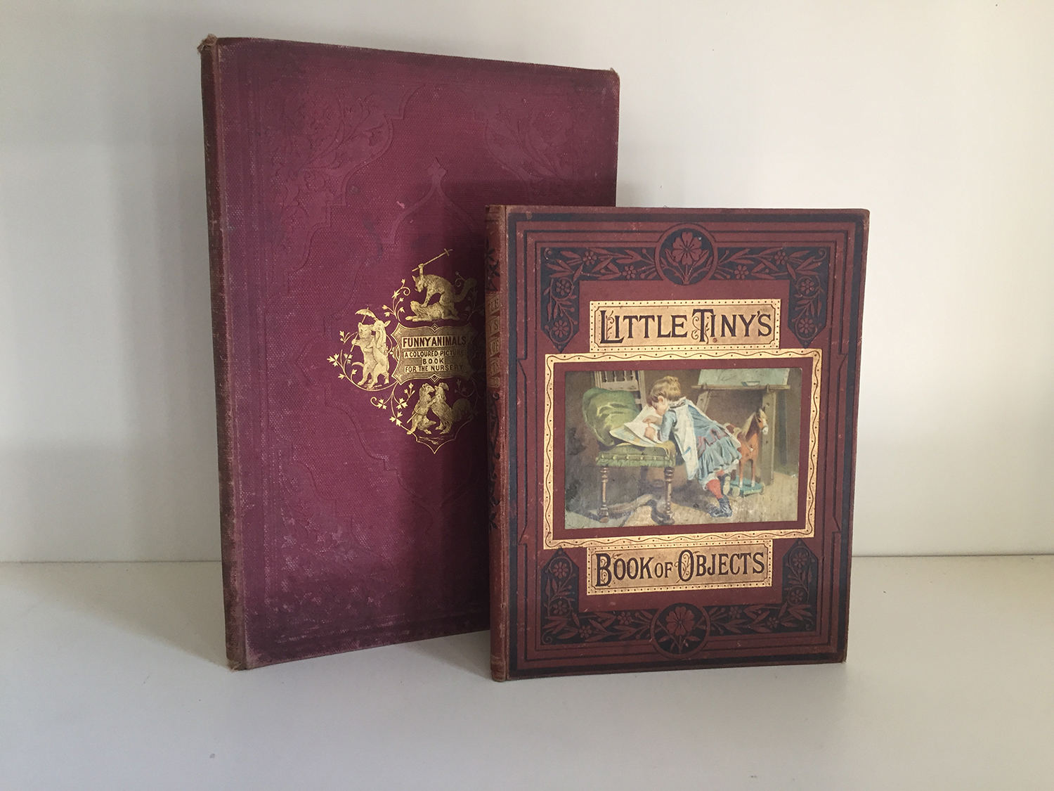 VICTORIANA: A pair of charming Victorian-era children's books: FUNNY ANIMALS; A PICTURE BOOK FOR THE NURSERY. impl 8vo. With illustrations by R. M. Ballantyne (using pseud. 'Comus'), &c. T. Nelson & Sons, 1868. + LITTLE TINY'S BOOK OF OBJECTS. f'cap 4to. George Routledge & Sons, [c.1883].