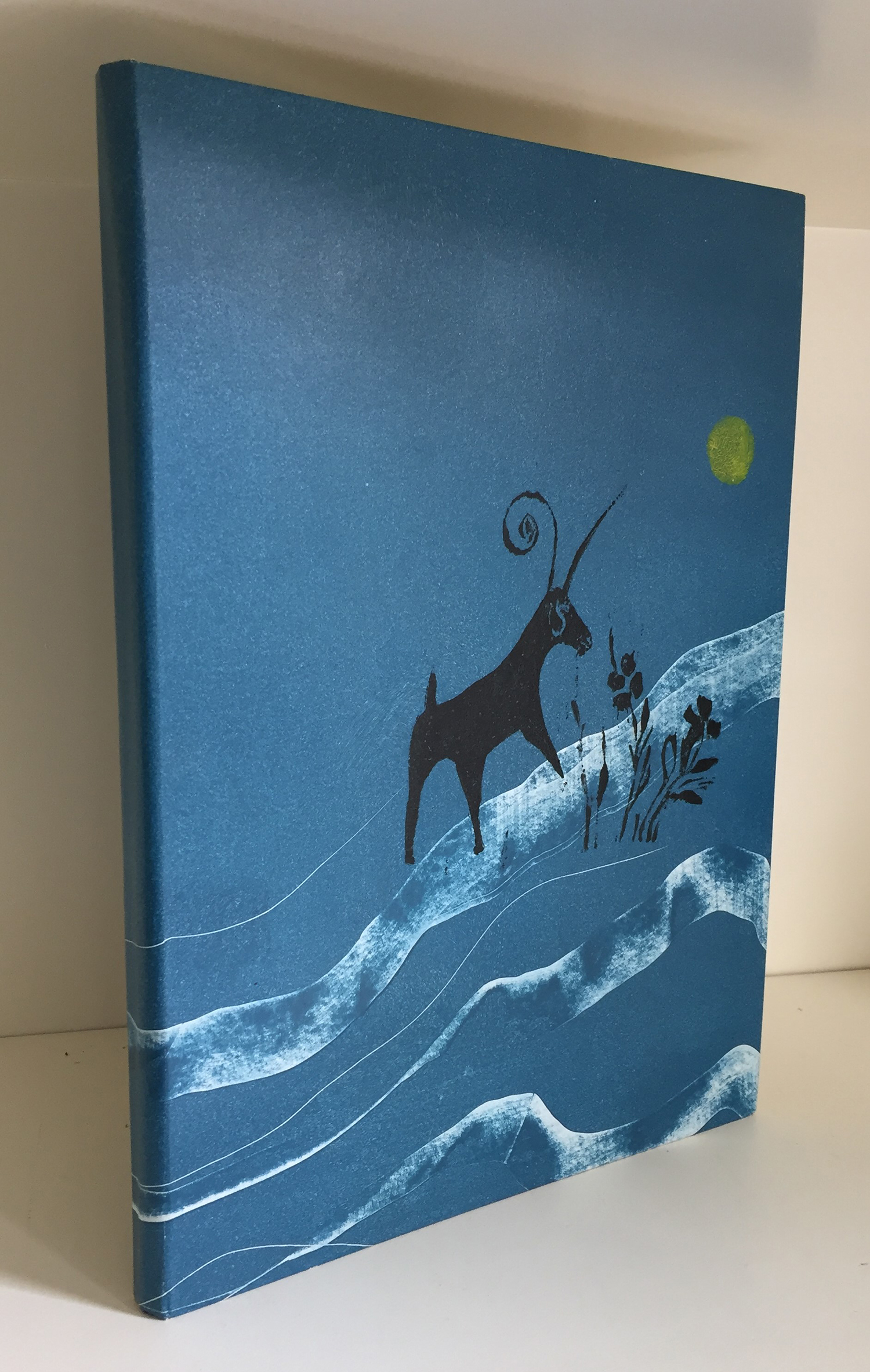 [AN AUSTRALIAN ARTIST'S BOOK]: HOLMES, Lorraine. ODDILLY THE GOAT. super roy 4to; initial letters inscribed by hand in gouache, hand-coloured linocut illustrations. Hand bound by Helen Wadlington using the Japanese 'butterfly' binding technique. Holmes-Wadlington, 1988. No. 17 of 50 copies, signed by Lorraine Holmes. Rare. (Muir 4163; BAL 2:475.)