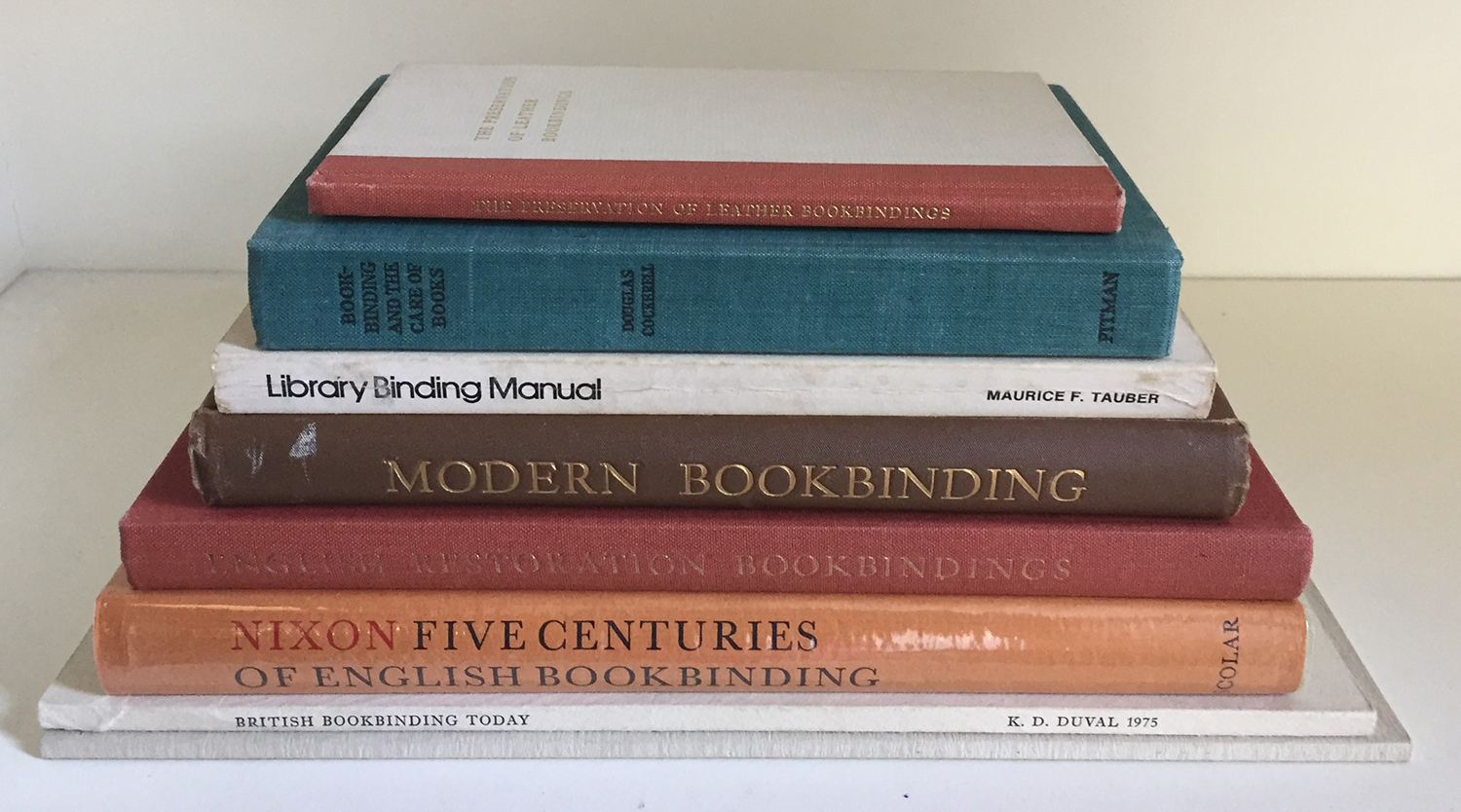 [Bookbinding]: A nice group of eight books about bookbinding, including: ENGLISH RESTORATION BOOKBINDINGS. British Museum Publications, 1974. First edition. + FIVE CENTURIES OF ENGLISH BOOKBINDING. Scolar Press, 1978. First edition.