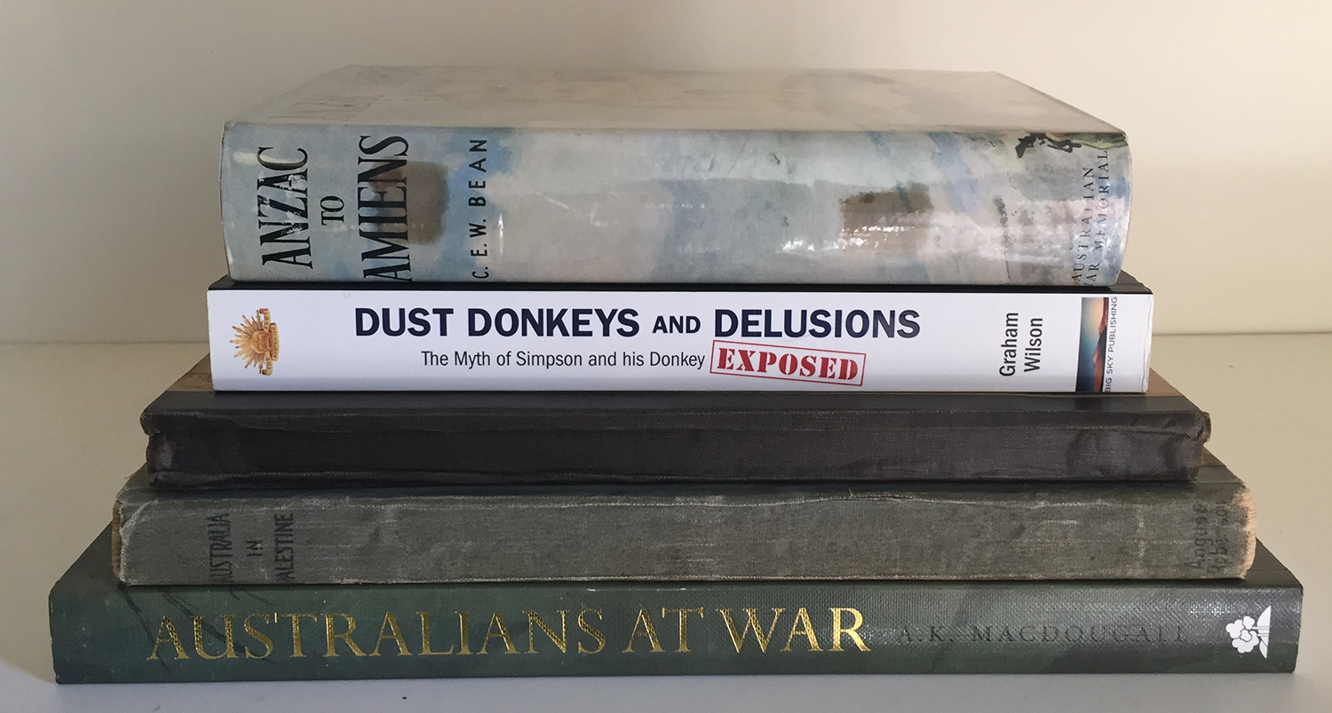 HARRIS, Phillip L. (ed.) AUSSIE. A reprint of all the numbers of the Diggers' own paper of the battlefield. Phillip L. Harris for The Australian War Museum, 1920. Scarce. + AUSTRALIA IN PALESTINE. Angus & Robertson, 1919. First edition. Uncommon. + Three other Australian military works.