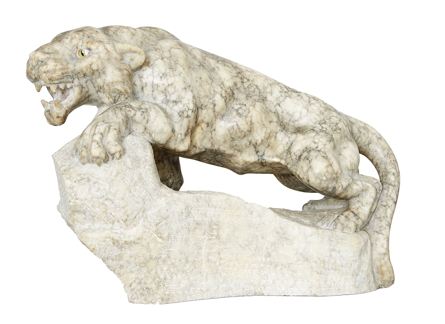 AN ITALIAN MARBLE CARVING OF A TIGER, ATTRIBUTED TO PROFFESOR MAZZINI, LATE 19TH CENTURY