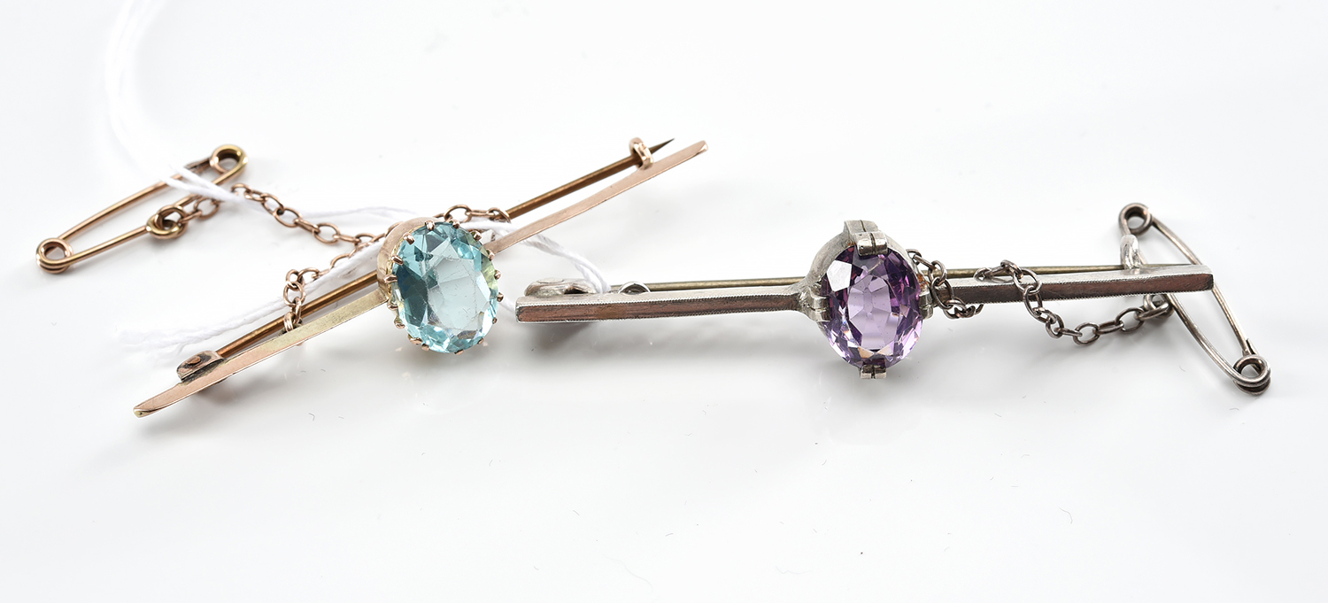 TWO STONE SET BROOCHES INCLUDING 9CT GOLD AND STERLING SILVER