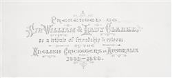 Notes: Sir William Clarke was President of the Melbourne Cricket Club. Lady Clarke & her companion Florence Morphy were 2 of the ladies who presented Ivo Bligh with the original Ashes urn. In 1884 Ivo Bligh returned to Australia and married Florence Morphy. After the death of his brother they became Lord & Lady Darnley.