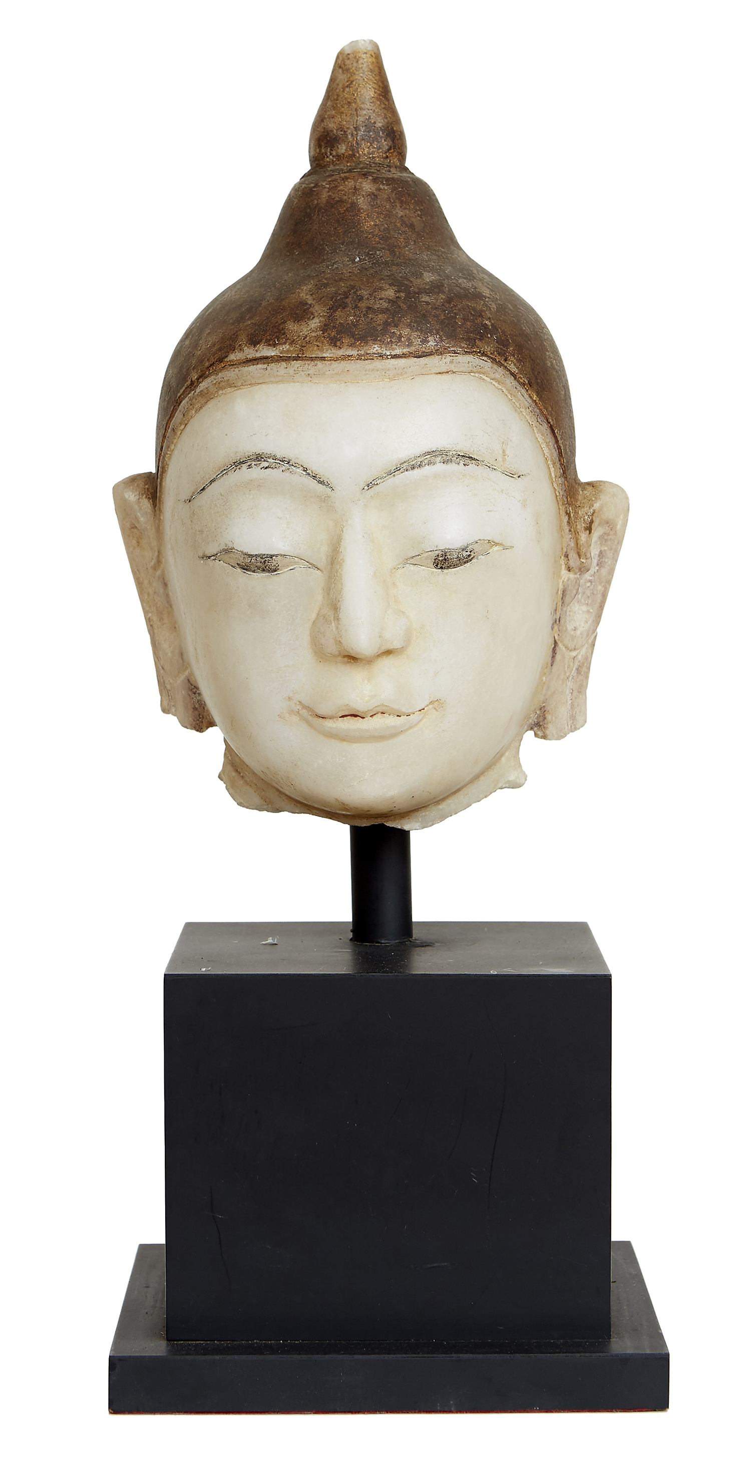 A BURMESE WHITE MARBLE HEAD OF BUDDHA