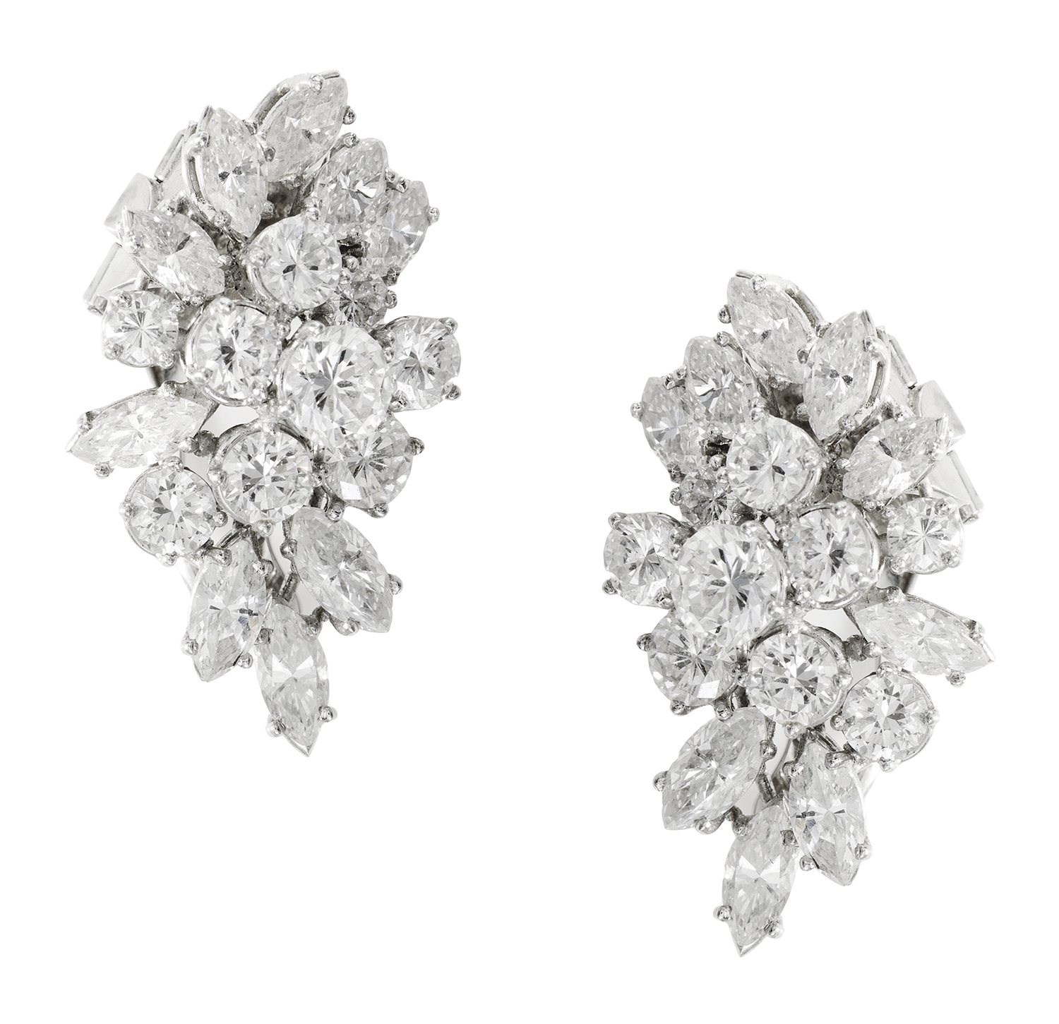Of spray design, each comprising marquise and round brilliant cut diamonds totalling 3.00cts, mounted in 18ct white gold.