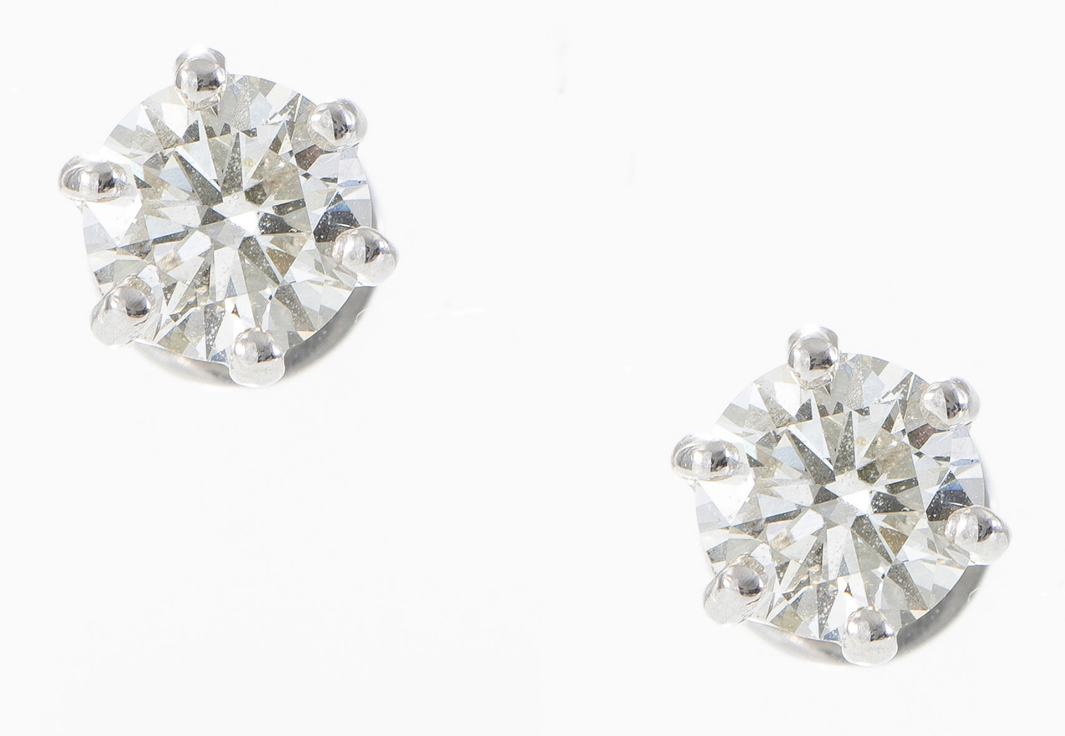 The earrings present in very good condition. Stones secure. Graded in the mount as colour H-I, clarity SI1-2.