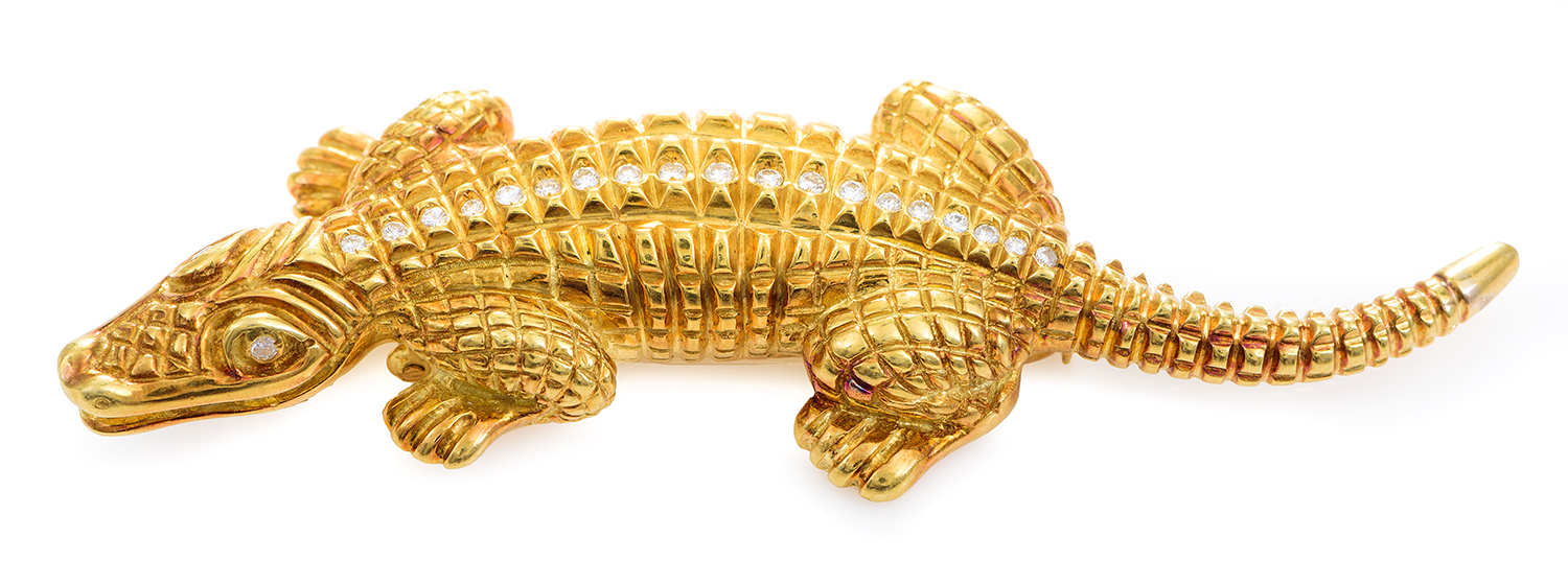 The textured gold body set with small diamonds, mounted in 18ct gold.
