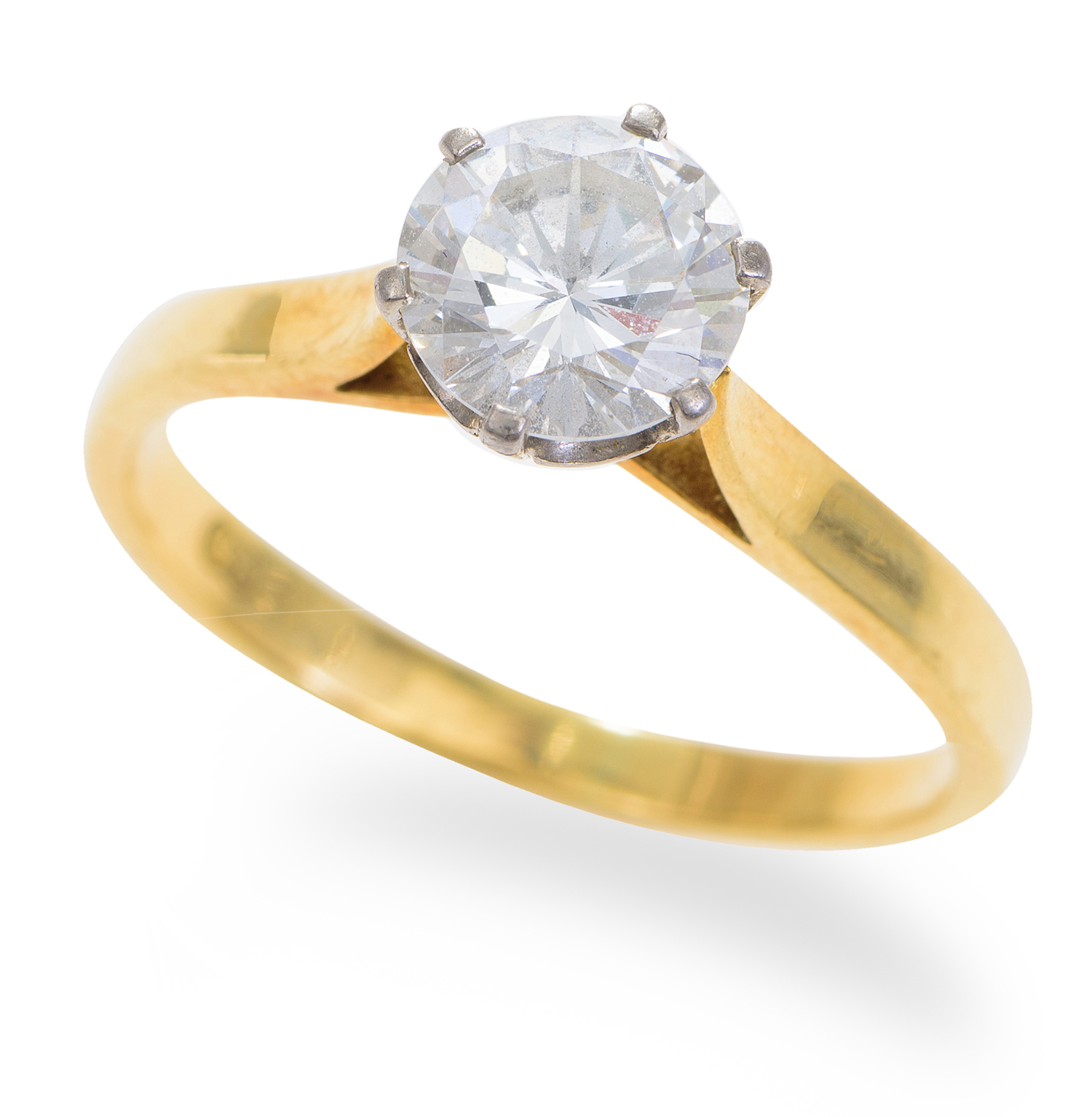 Comprising a round brilliant cut diamond of 1.02cts, mounted in 18ct gold, ring size M.