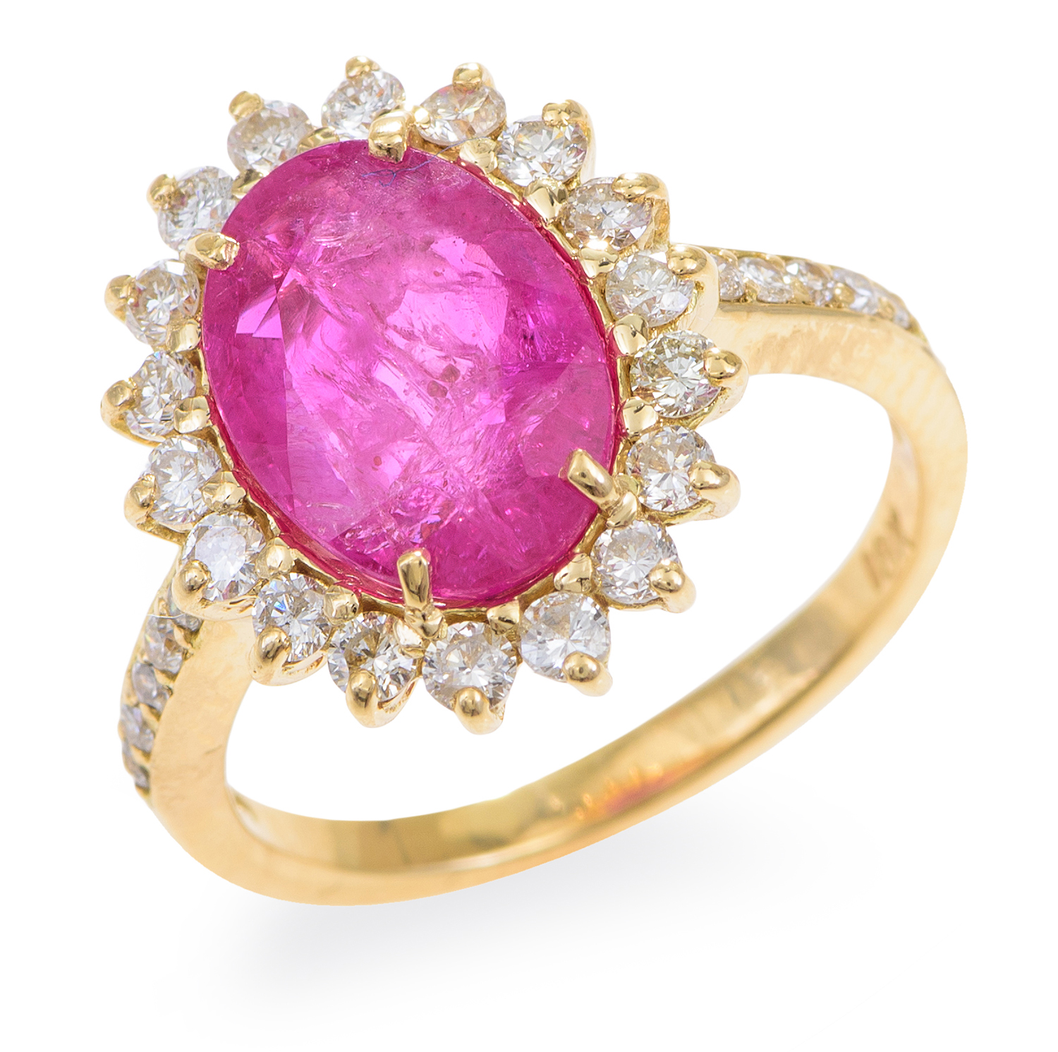 The ring presents in excellent condition with all stones secure in the setting. Ruby is included and medium pinkish red in colour. Diamonds of good commercial colour and quality.