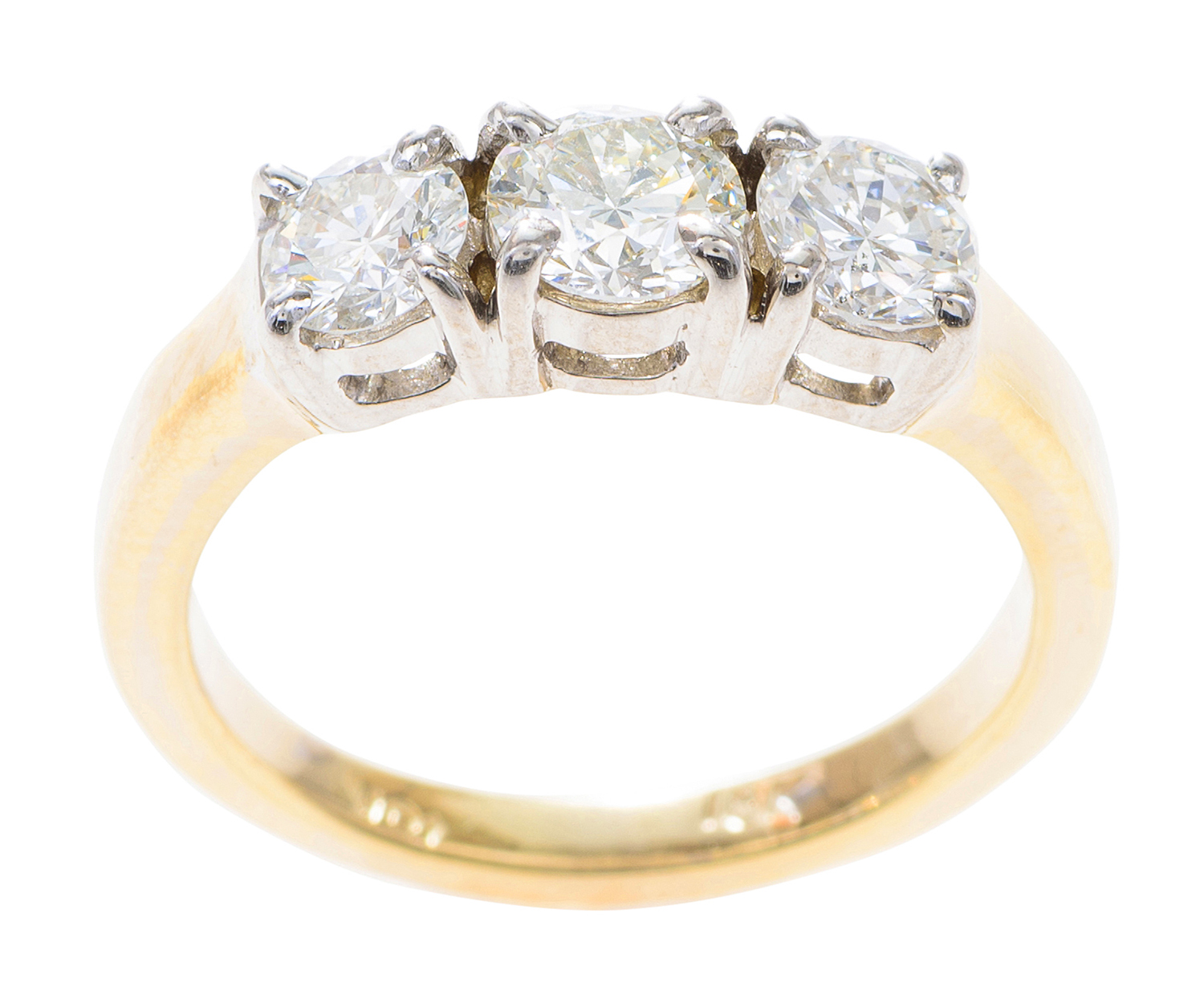 Set with three round brilliant cut diamonds totalling 1.42cts, mounted in 18ct gold, ring size M.