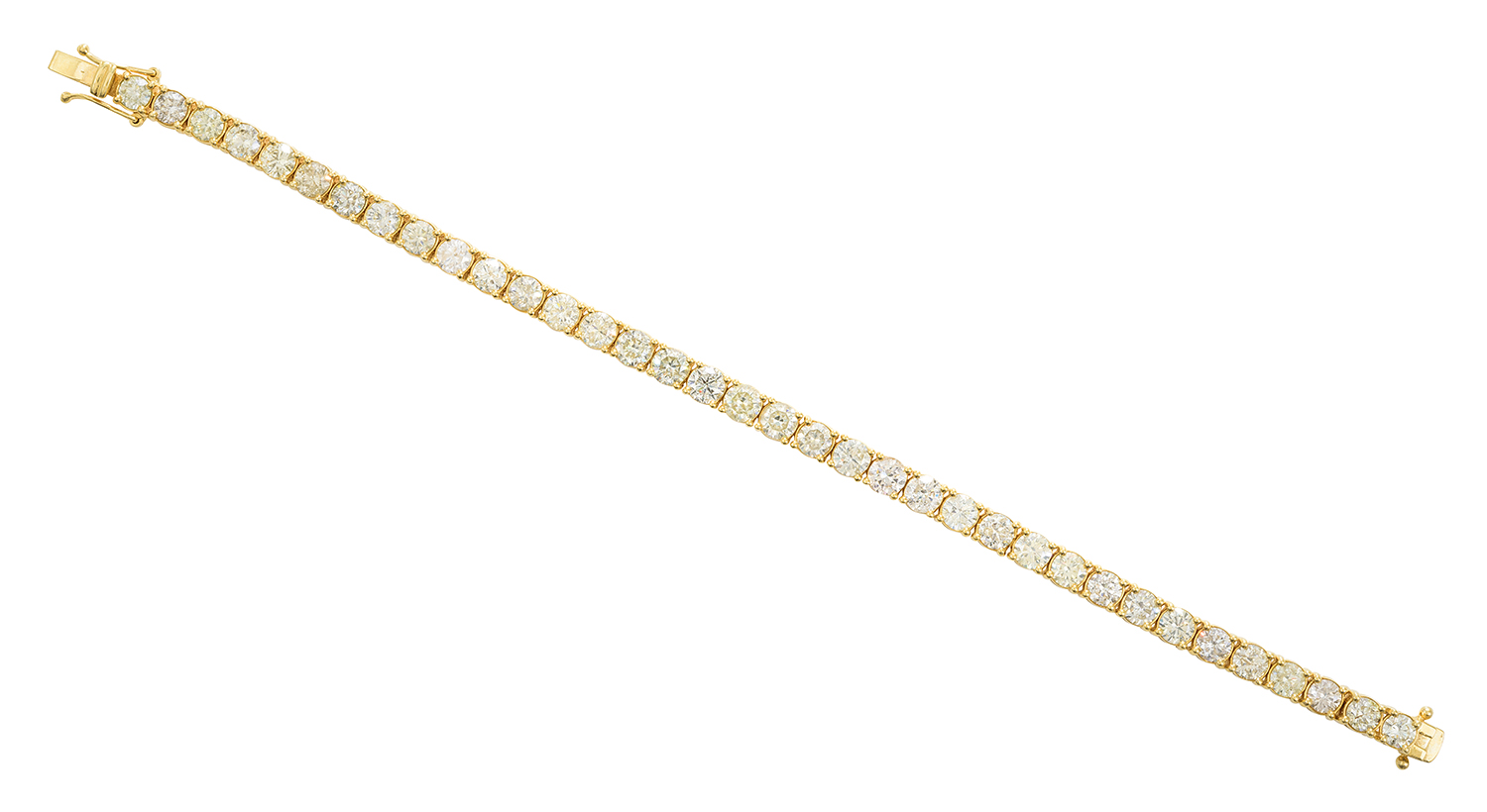 Comprising thirty six round brilliant cut diamonds totalling 12.10cts, mounted in 18ct gold, length 183mm .