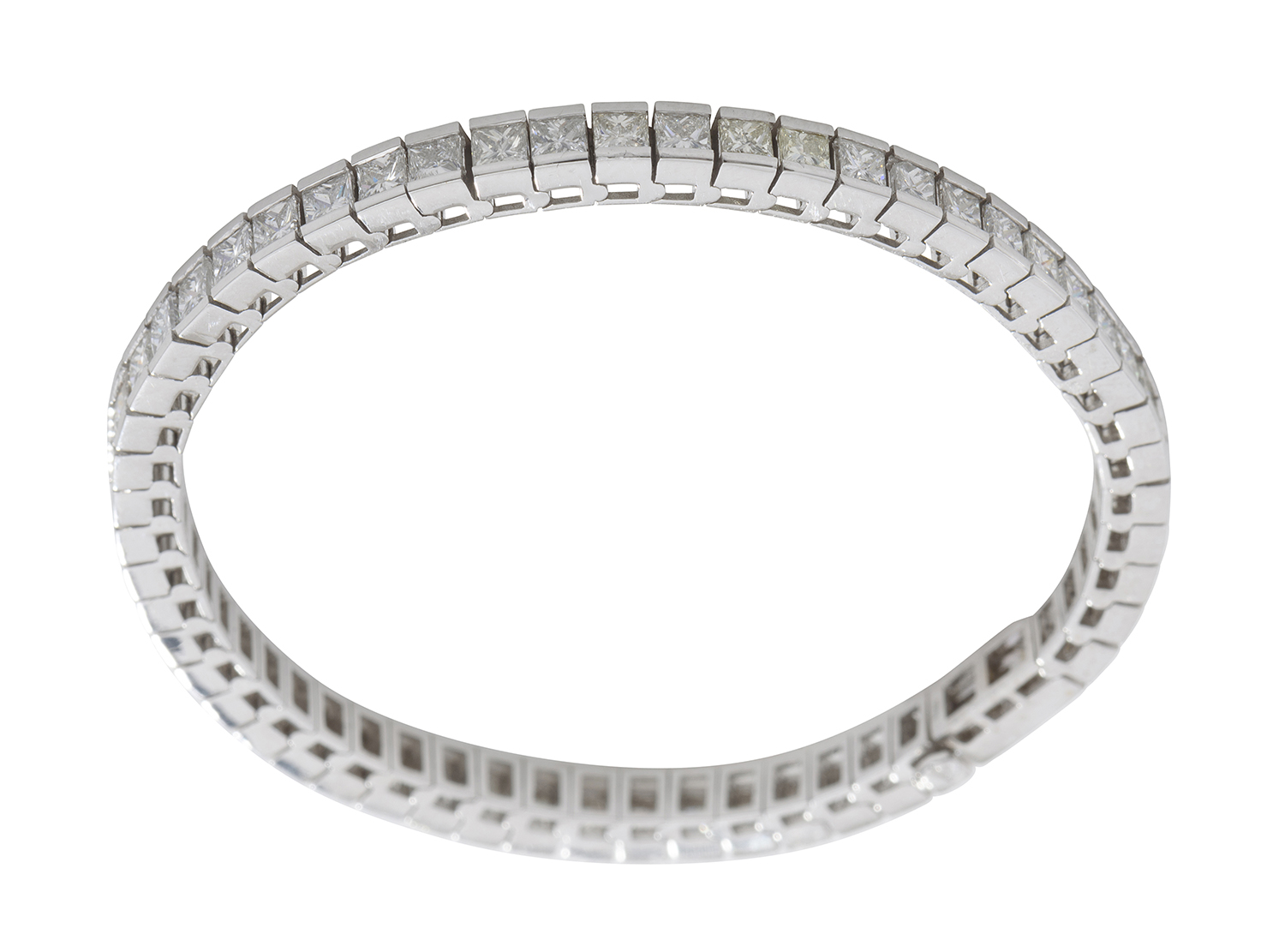 Comprising fifty six princess cut diamonds totalling 5.60cts, mounted in 18ct white gold, total length 180mm,