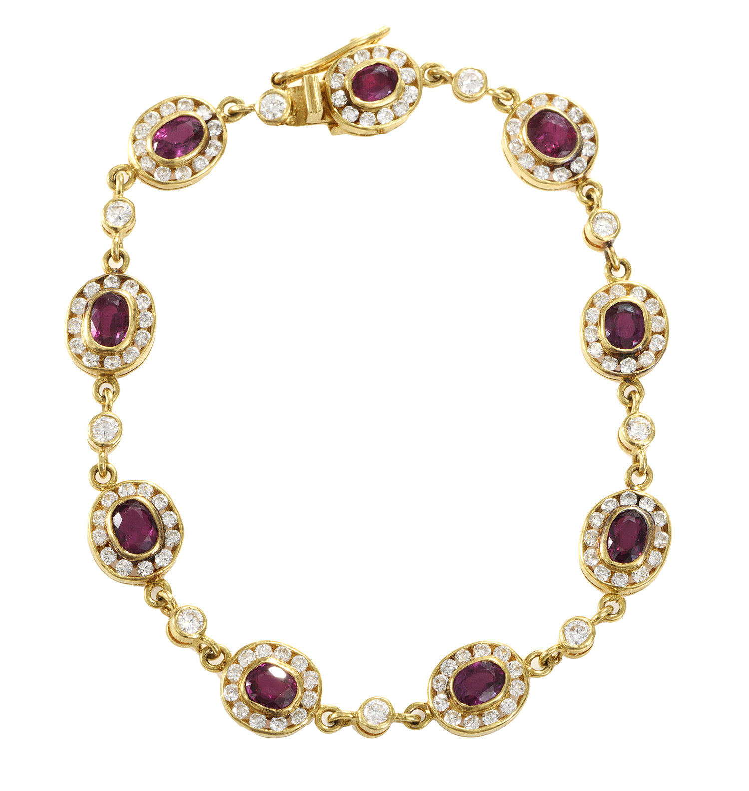 Comprising oval clusters set with rubies totalling 2.45cts, round brilliant cut diamonds totalling 1.30cts, total length 170mm, mounted in 18ct gold.
