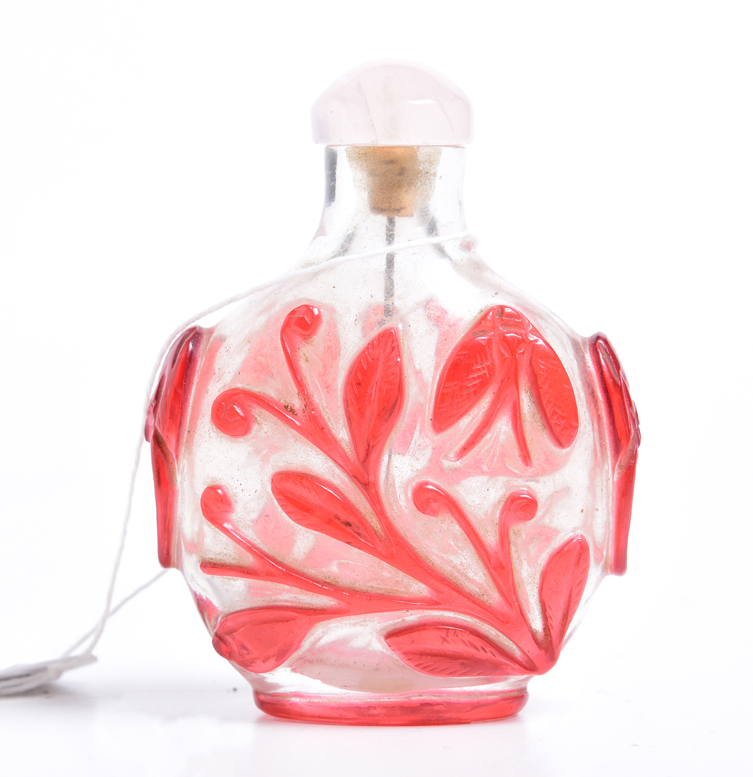 A RED OVERLAY PEKING GLASS SNUFF BOTTLE