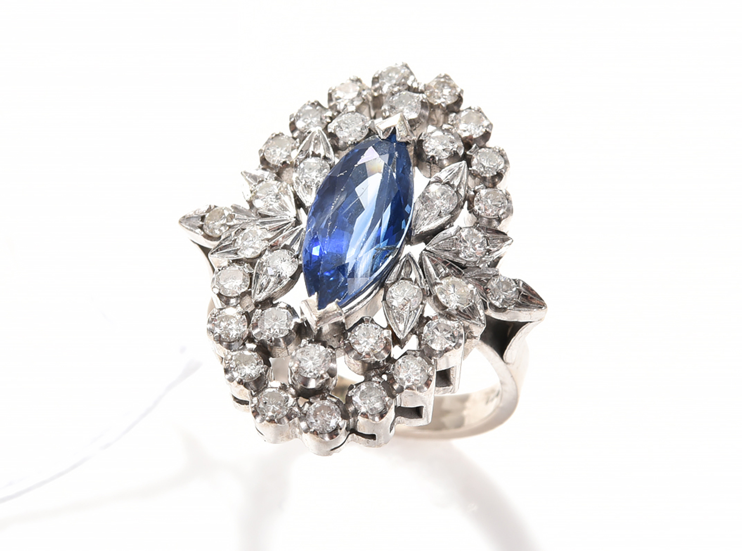 The diamonds are secure in their setting; the sapphire is slightly loose.l