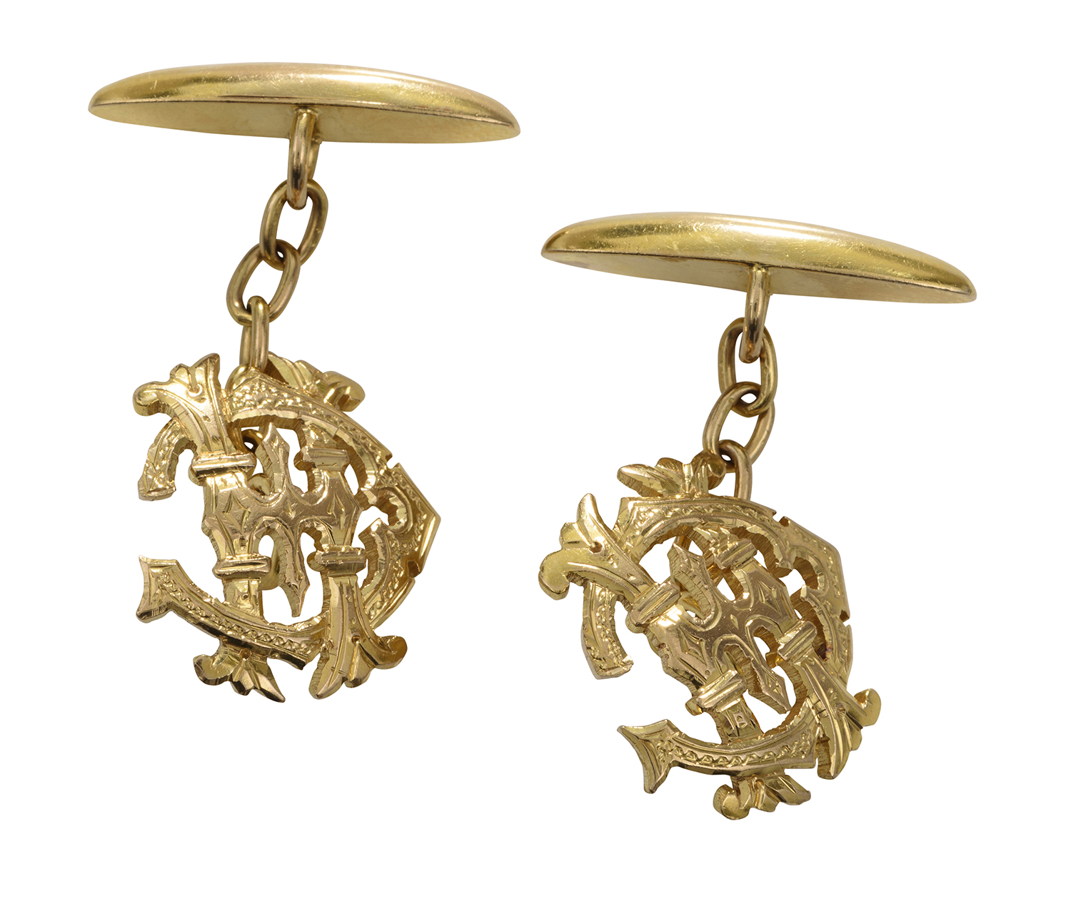 Of open pierced filigree design, with initials CH, mounted in 18ct gold.