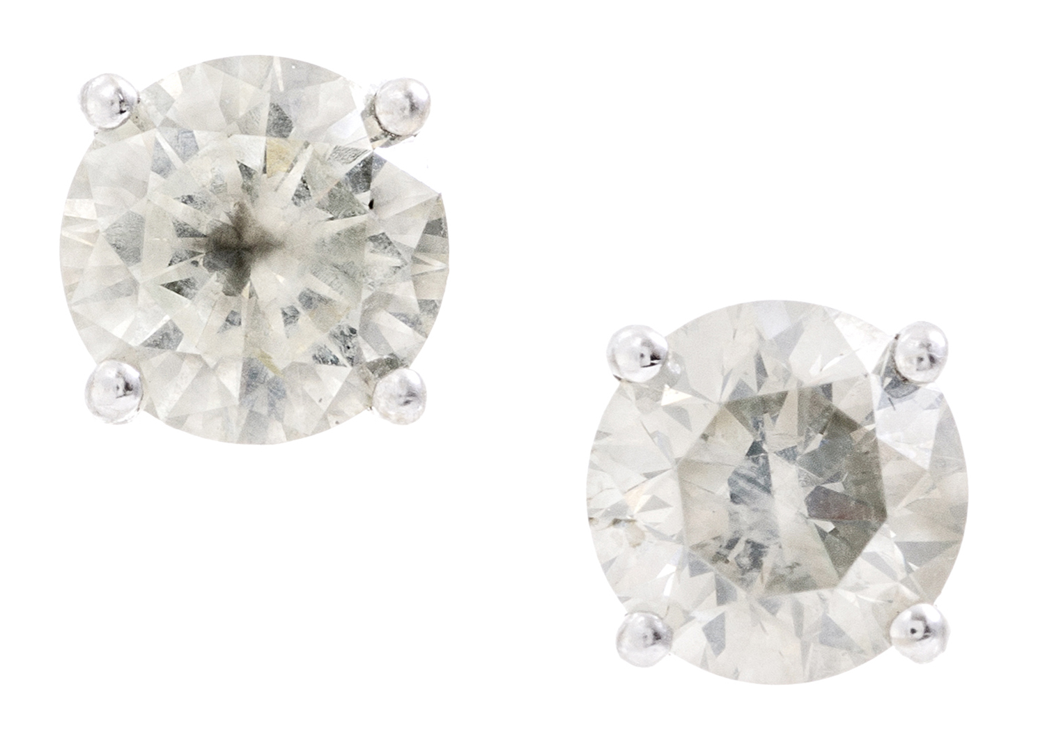 Each set with a round brilliant cut diamond of 1.54cts, mounted in 18ct white gold.