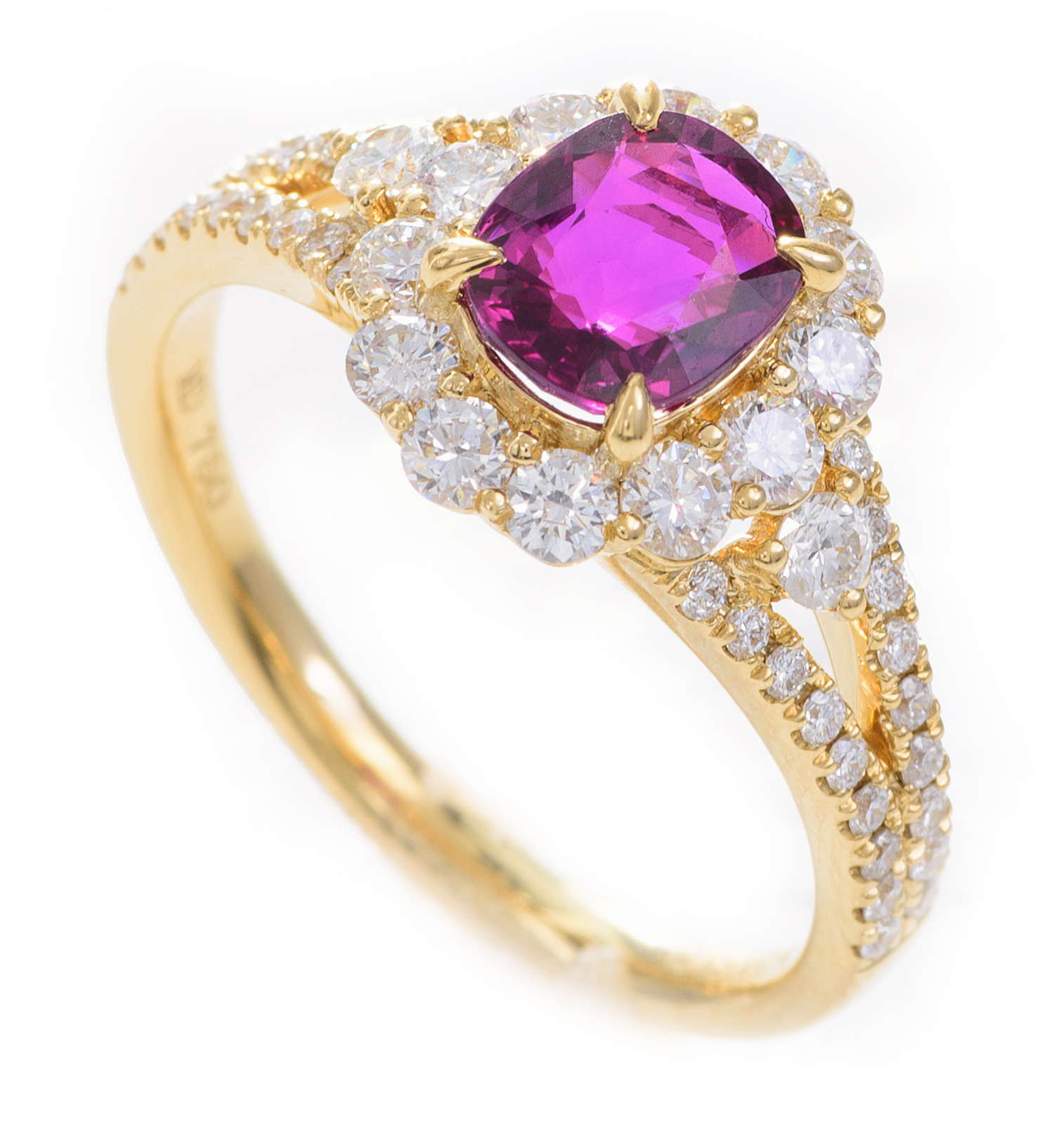 The ring presents in overall excellent condition. All stones are secure in the setting. Diamonds are of a good commercial colour and quality. The ruby is translucent, deep purplish red.