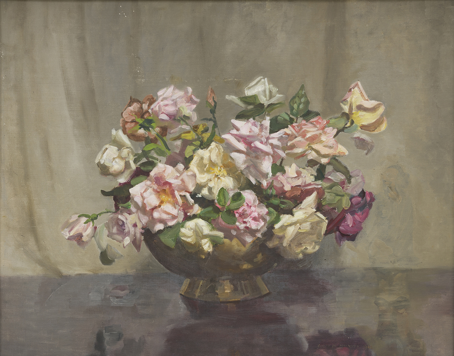 JOY HESTER (1920-1960) Girl with Cocky c.1957 oil on paper on board