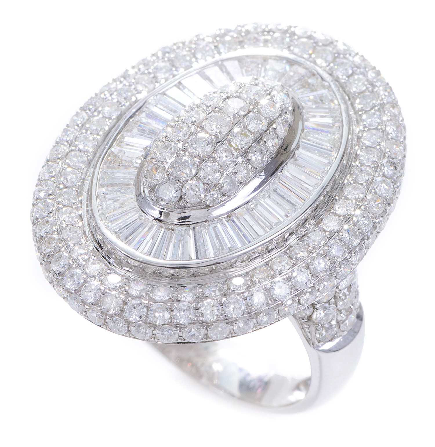 The ring presents in excellent condition. All stones secure in their settings. Diamonds graded as Colour G-H, Clarity VS2-SI