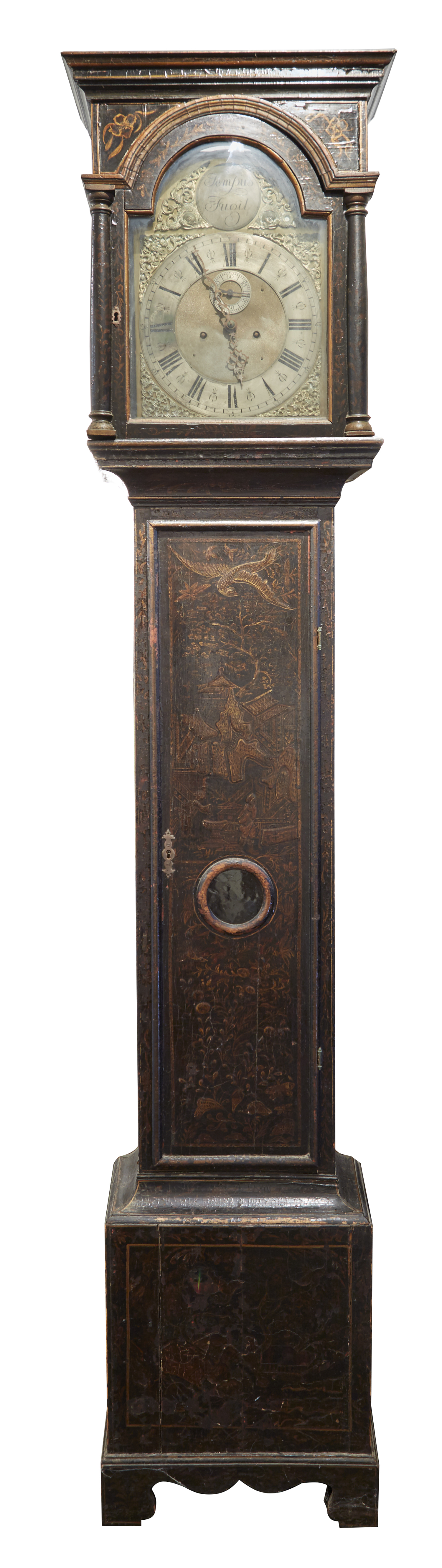 A GEORGE II CHINOISERIE BLACK JAPANNED LONGCASE CLOCK, CIRCA 1750