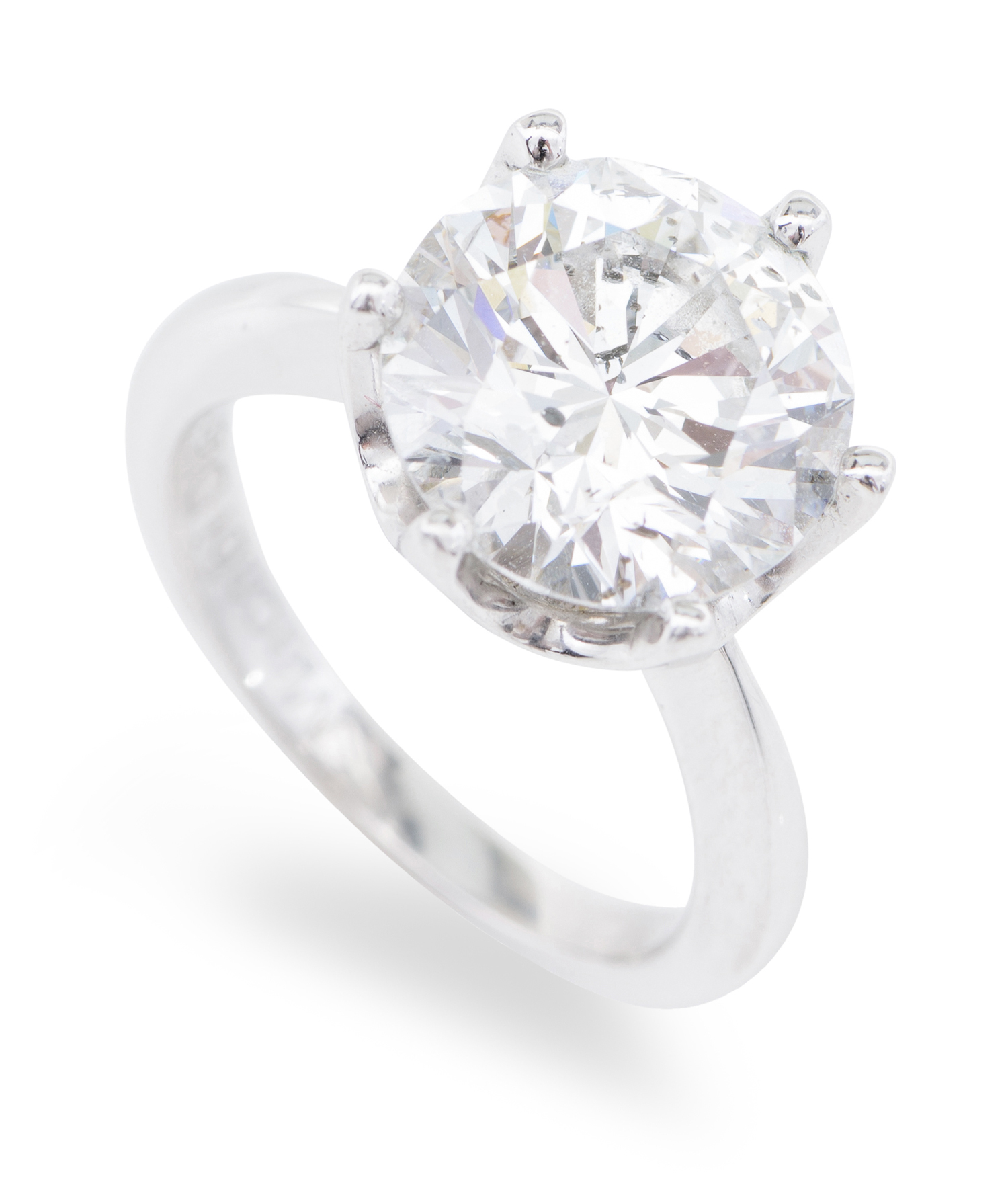 The round brilliant cut diamond of 5.06cts, mounted in 18ct white gold, ring size L, accompanied by an IGI report stating colour E and clarity SI2.