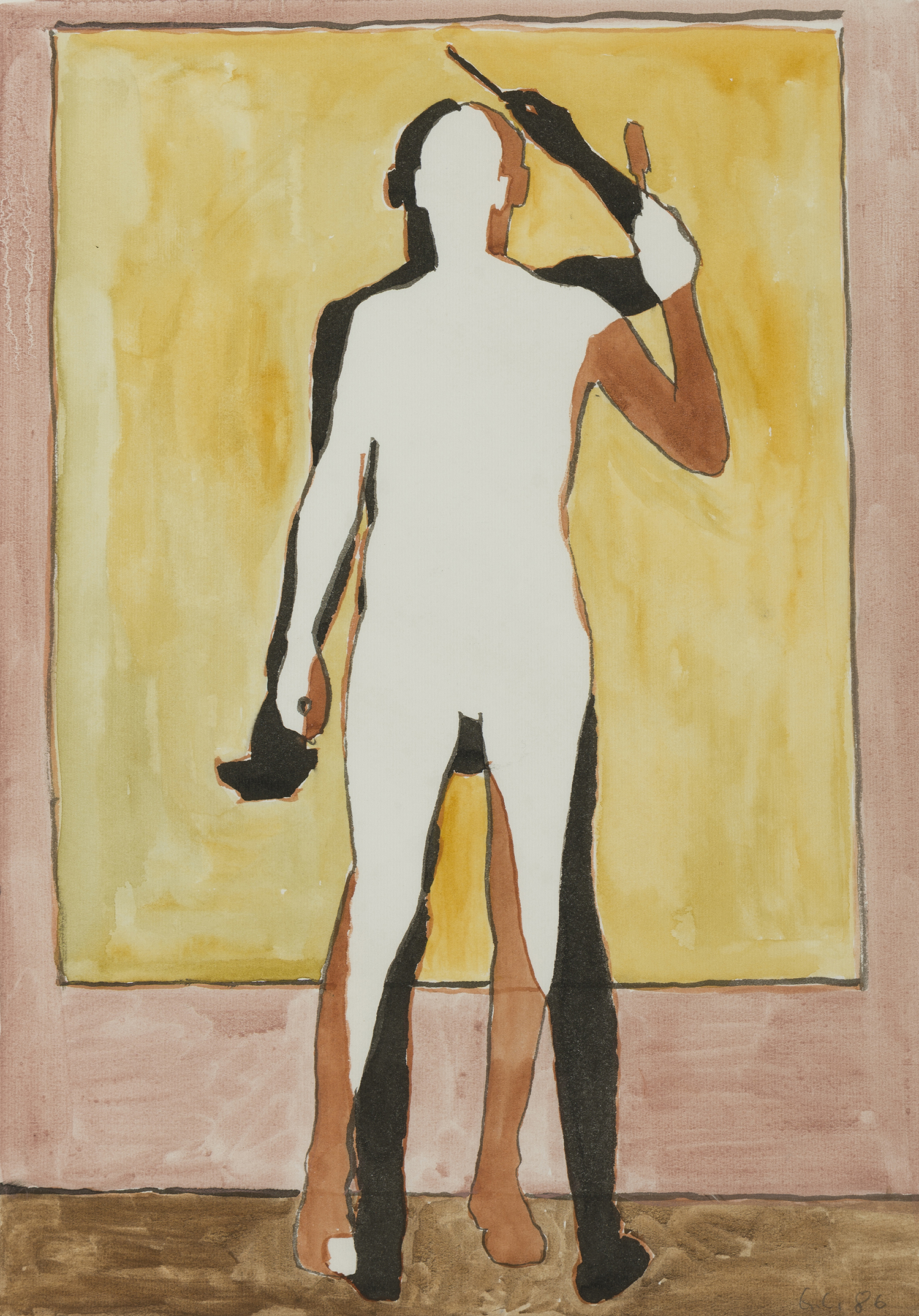 CHARLES BLACKMAN (born 1928) Trumpeter 1954 enamel paint on board