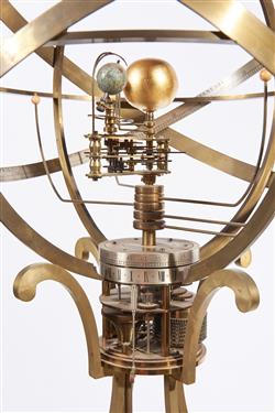 Orrery- dial re-silvered. All brass work tarnished/worn. working however not recently serviced or timed. Wooden planets replaced. sun re-gilded. Indicator for hour and minutes not original.