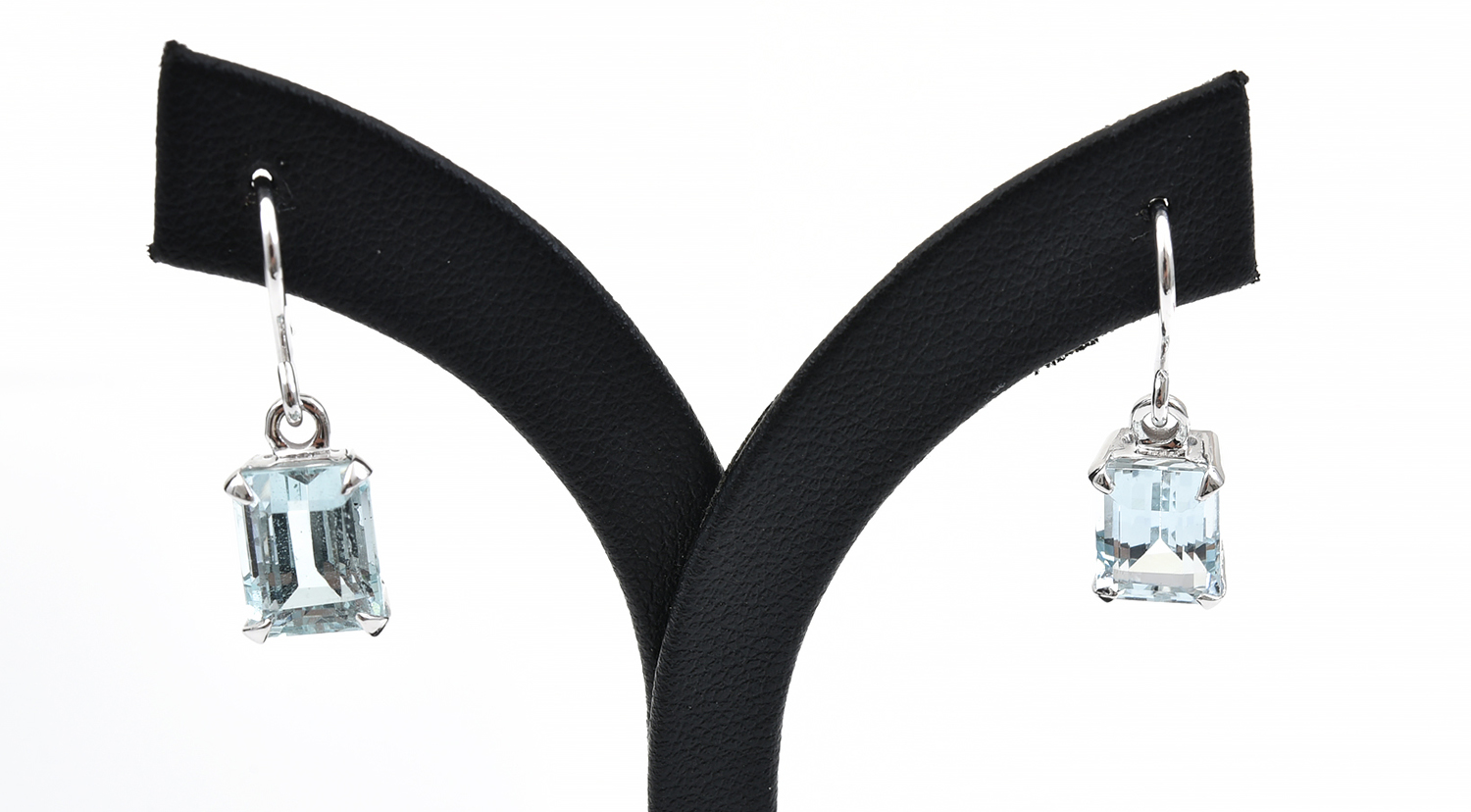 A PAIR OF AQUAMARINE HOOK DROP EARRINGS IN 18CT WHITE GOLD