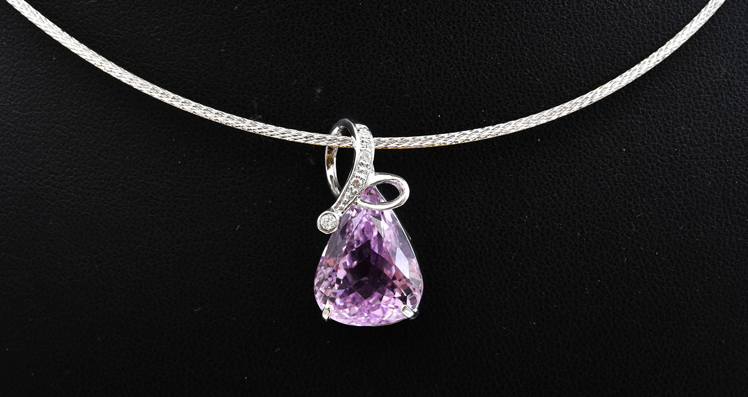 A KUNZITE PENDANT IN 18CT WHITE GOLD