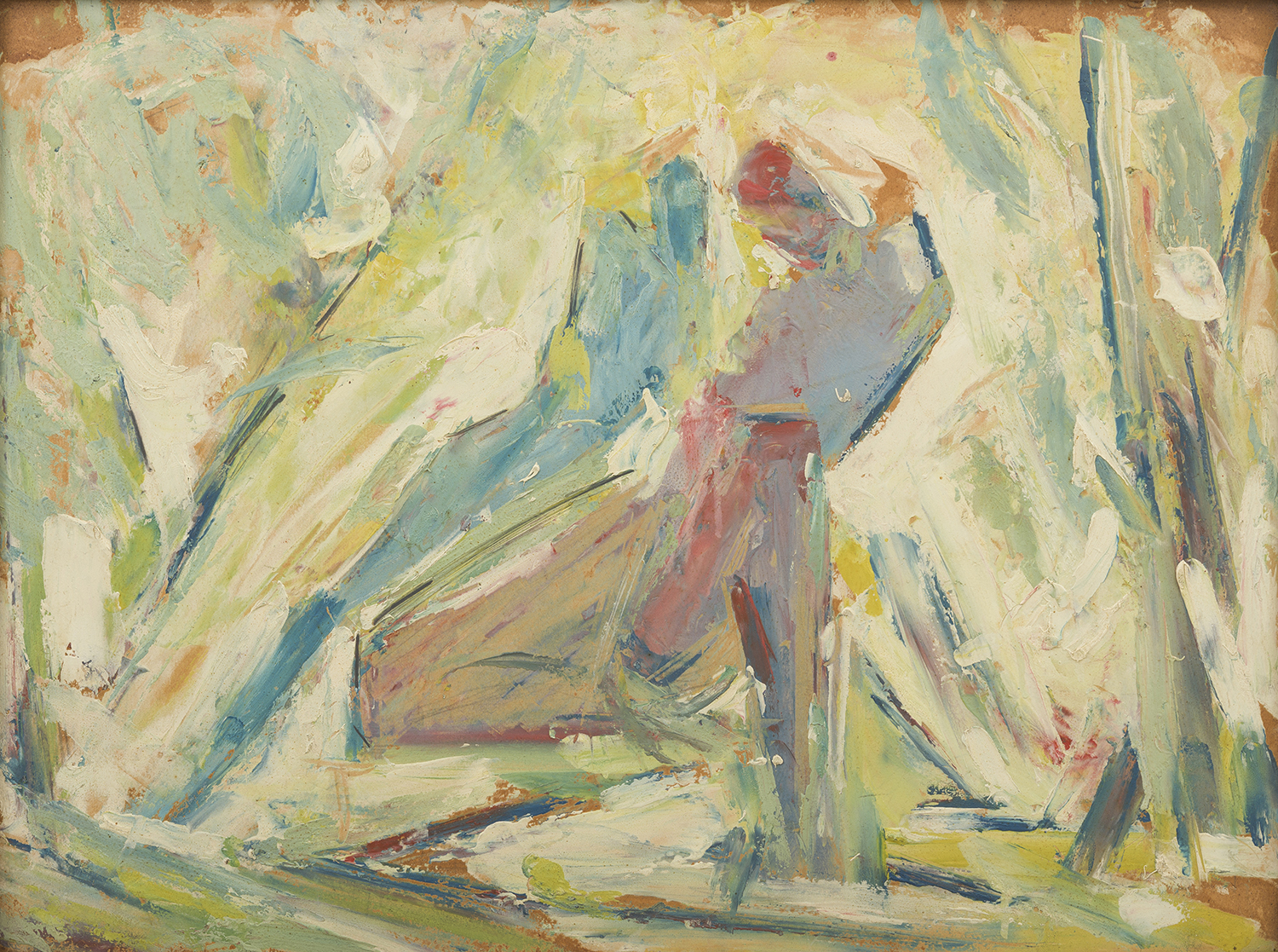 CHARLES BLACKMAN (born 1928) Trumpeter 1954 enamel paint on board
