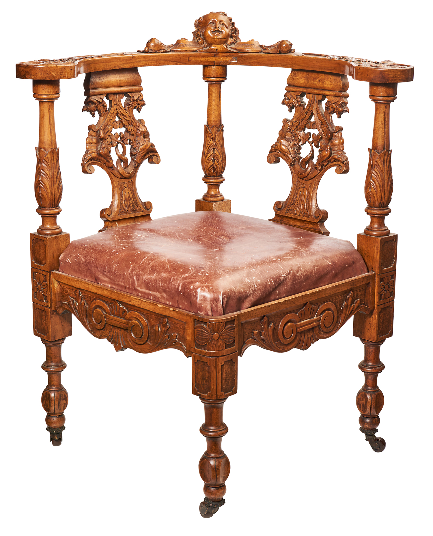 A CONTINENTAL RENAISSANCE REVIVAL CORNER CHAIR