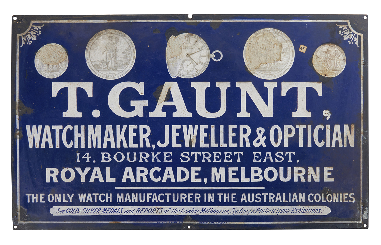 Reading T.Gaunt, Watchmaker, Jeweller & Optician- 14 Bourke street east, Royal Arcade, Melbourne-The only watch manufacturer in the Australian Colonies