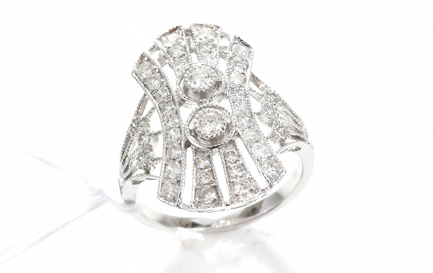 AN ART DECO STYLE DIAMOND RING, IN 18CT WHITE GOLD, SIZE L