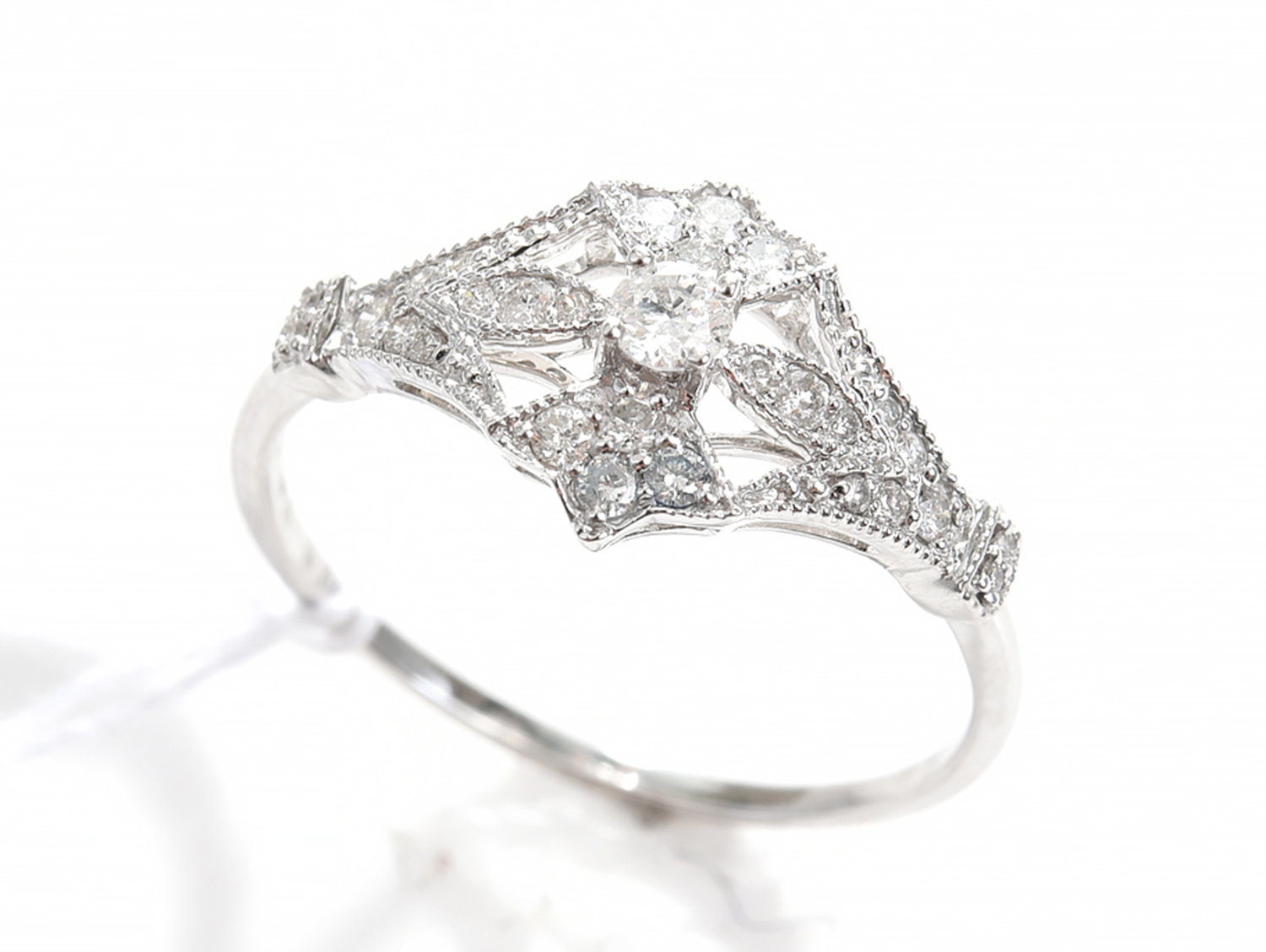 A DIAMOND RING, IN 18CT WHITE GOLD, SIZE O