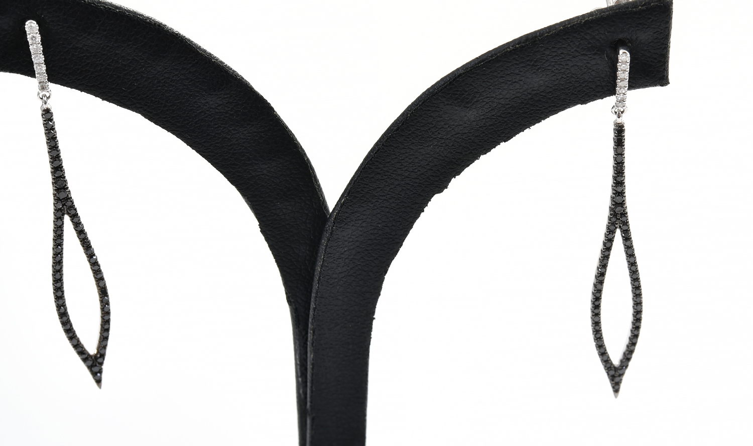 A PAIR OF BLACK AND WHITE DIAMOND DROP EARRINGS, IN 18CT WHITE GOLD