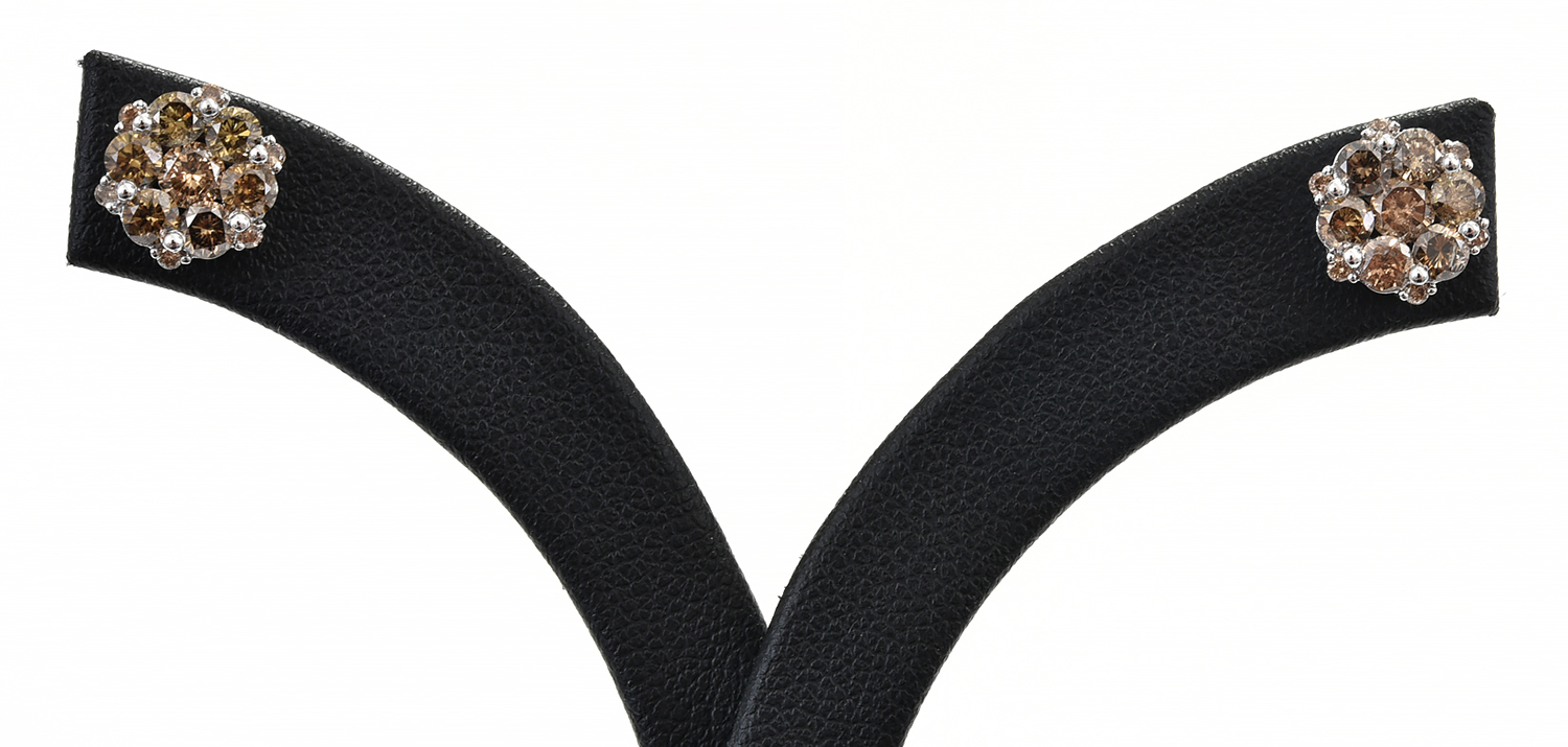 A PAIR OF CHAMPAGNE DIAMOND STUD EARRINGS, IN 18CT WHITE GOLD