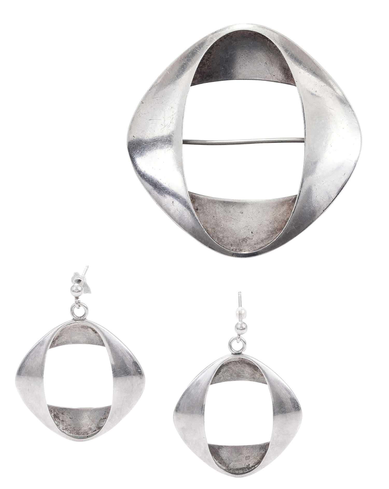 Designed by Henning Koppel, crafted in sterling silver, comprising a brooch with reference number 368 and matching earrings with reference number 190, brooch stamped with English import marks, London, 1969.