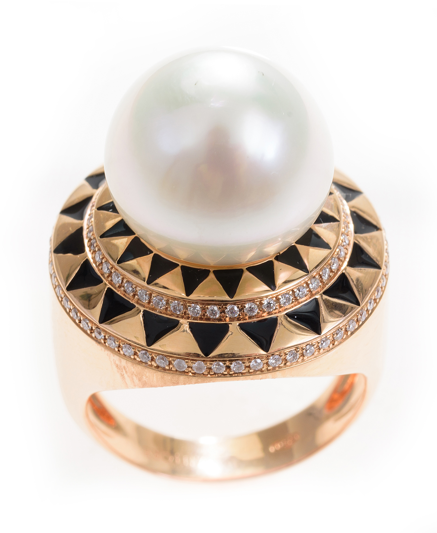 The ring presents in overall very good condition. Enamel intact. pearl of very good lustre.